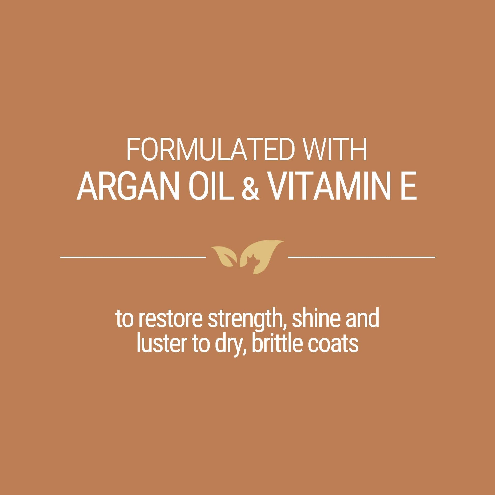 - Argan Oil Benefits - Crafted to renew the coat's cell structure, sealing in shine and create a lush softness. Deodorizes and eliminates stinky odors.