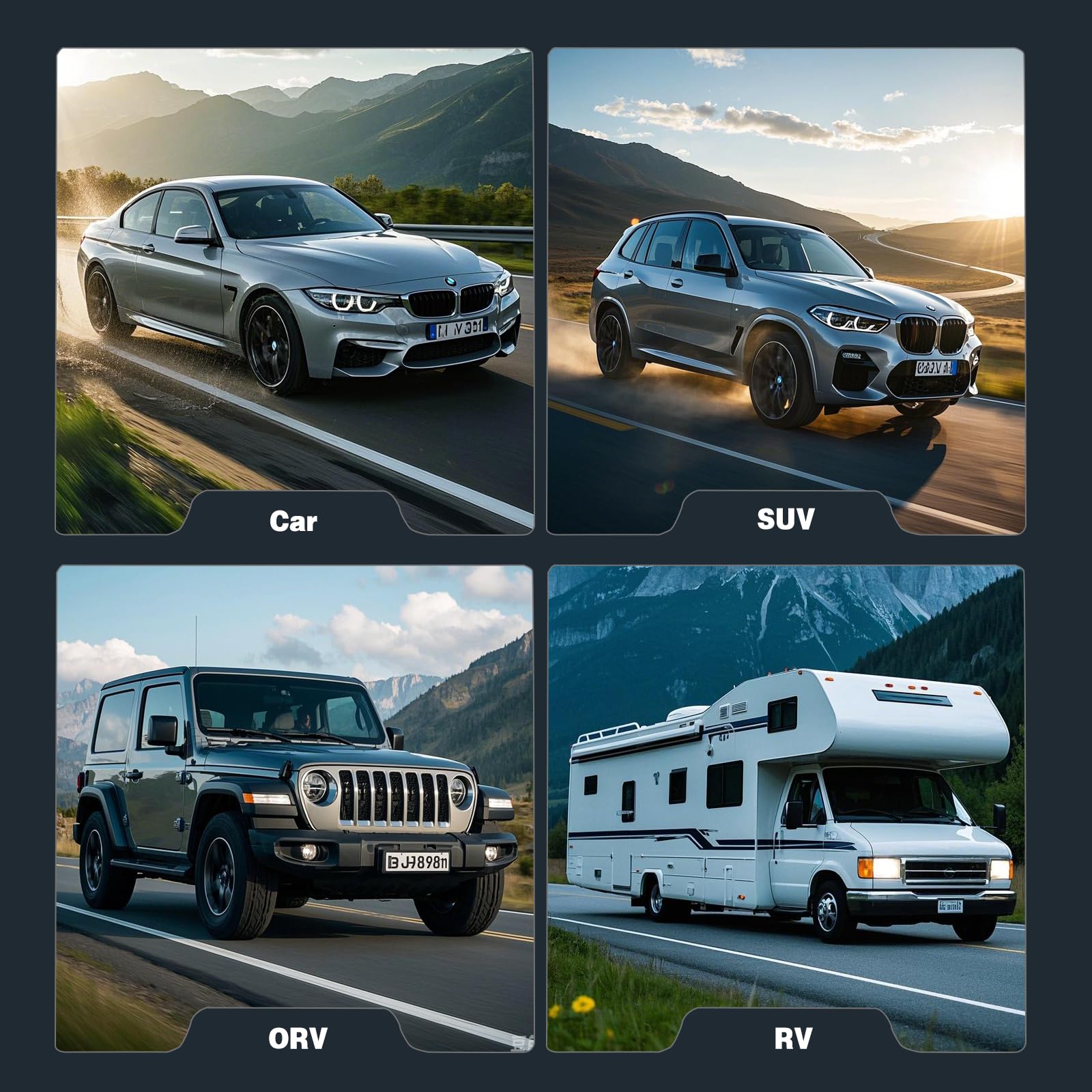 - WORKS: particularly suitable for SUVs, trucks, vans, RVs, crossovers, MPVs, campers,Auto, trailers, minivans, also can use for cars, motorcycles, golf carts, bicycles, and more.