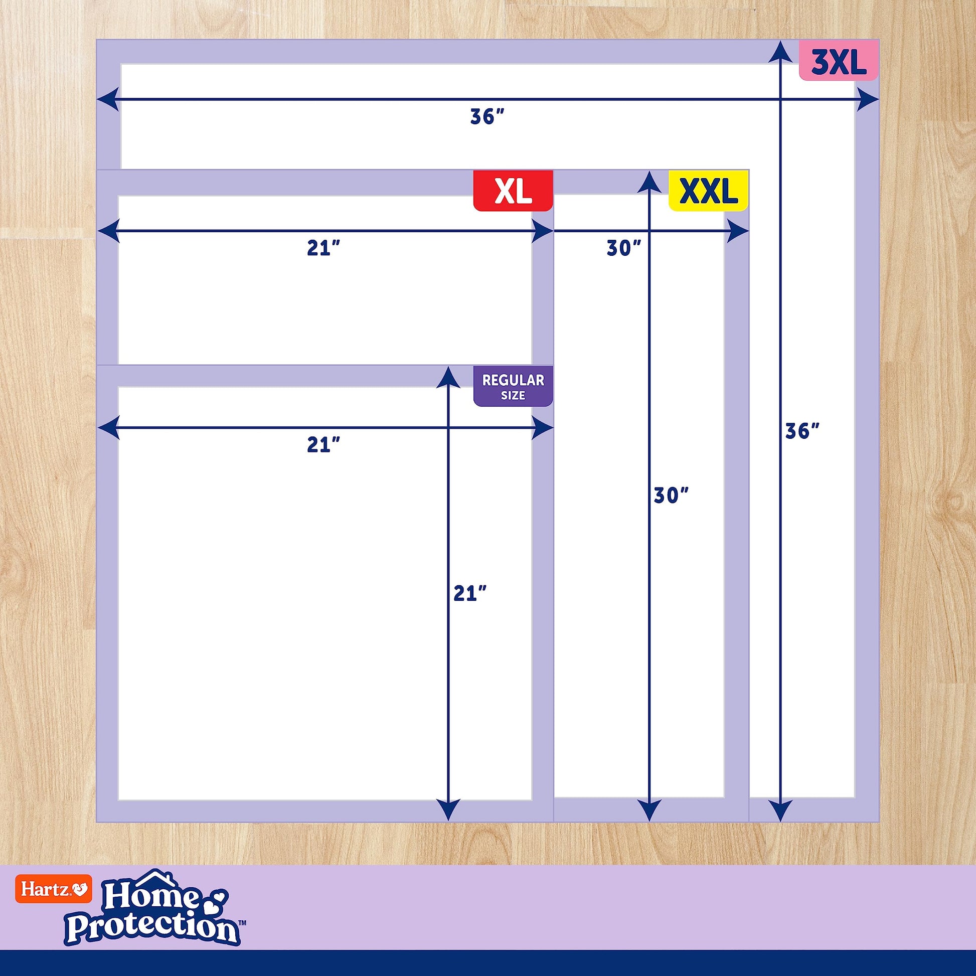 Details: Coming home to pet messes is not how anyone likes to unwind after a long day, which is why we set out to create the ultimate dog pad. Hartz home protection dog pads make clean up simpler, replacement and disposal easy, and protect flooring from unpleasant accidents. Excellent for dogs living in homes with limited access to the outdoors, senior pups with restricted movement, puppies in training or sick dogs, home protection has you covered at every corner. Our absorption experts analyzed urine distribution and designed a pad with 6 layers, Containing our flash dry technology which creates a smaller urine Spot and allows for multiple uses per pad. When nature calls, home protection instantly turns urine into gel to reduce tracking, making clean up a breeze. A water-proof plastic backing and borders ensure our pads won’t Leak. The special odor harmonizing capability within all our lavender scented dog pads eliminates stinky smells left behind, turning eww to phew.