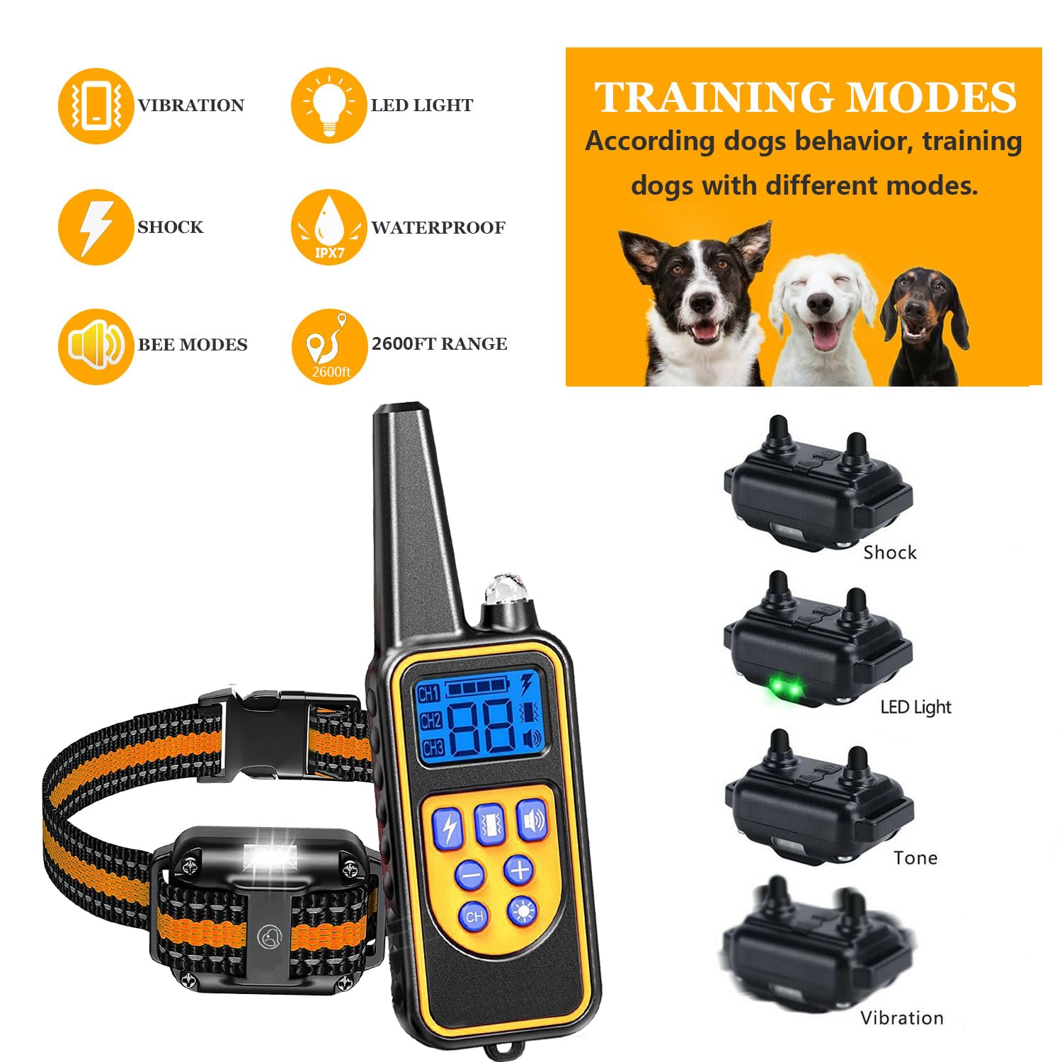- 4 Training Modes: LED Light for locating dogs in darkness, adjustable Vibration abd Shock from 0-99 levels, and Sound mode for an audible warning. Note: Treat your dog as friends, we suggest that the static shock should always be your last choice