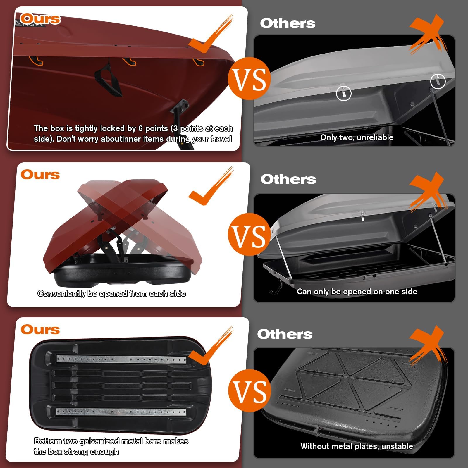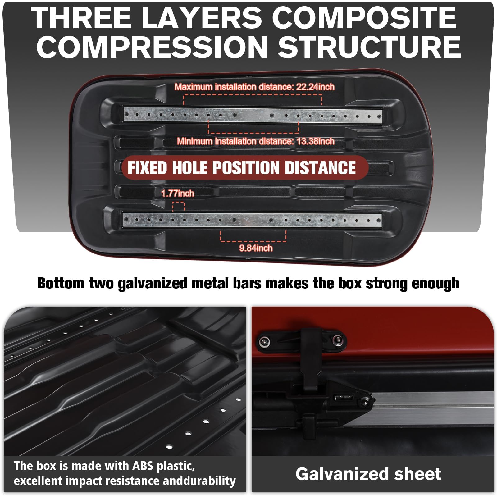 - Durable, All-Weather Protection - Made of impact-resistant ABS plastic and PMMA, this cargo box withstands tough outdoor conditions and protects your gear from rain, snow, wind and sun exposure