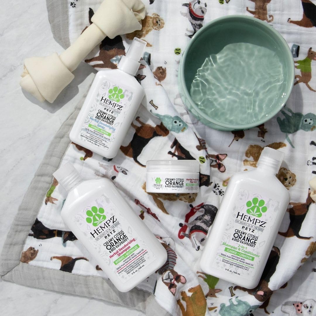 - 'A mild shampoo and gentle conditioner in one, Hempz Petz Herbal 2 in 1 Shampoo & conditioner nourishes, hydrates, and replenishes with 100% pure hemp seed oil. It Your pet’s skin and coat will look and feel their best with this easy to use formula.'