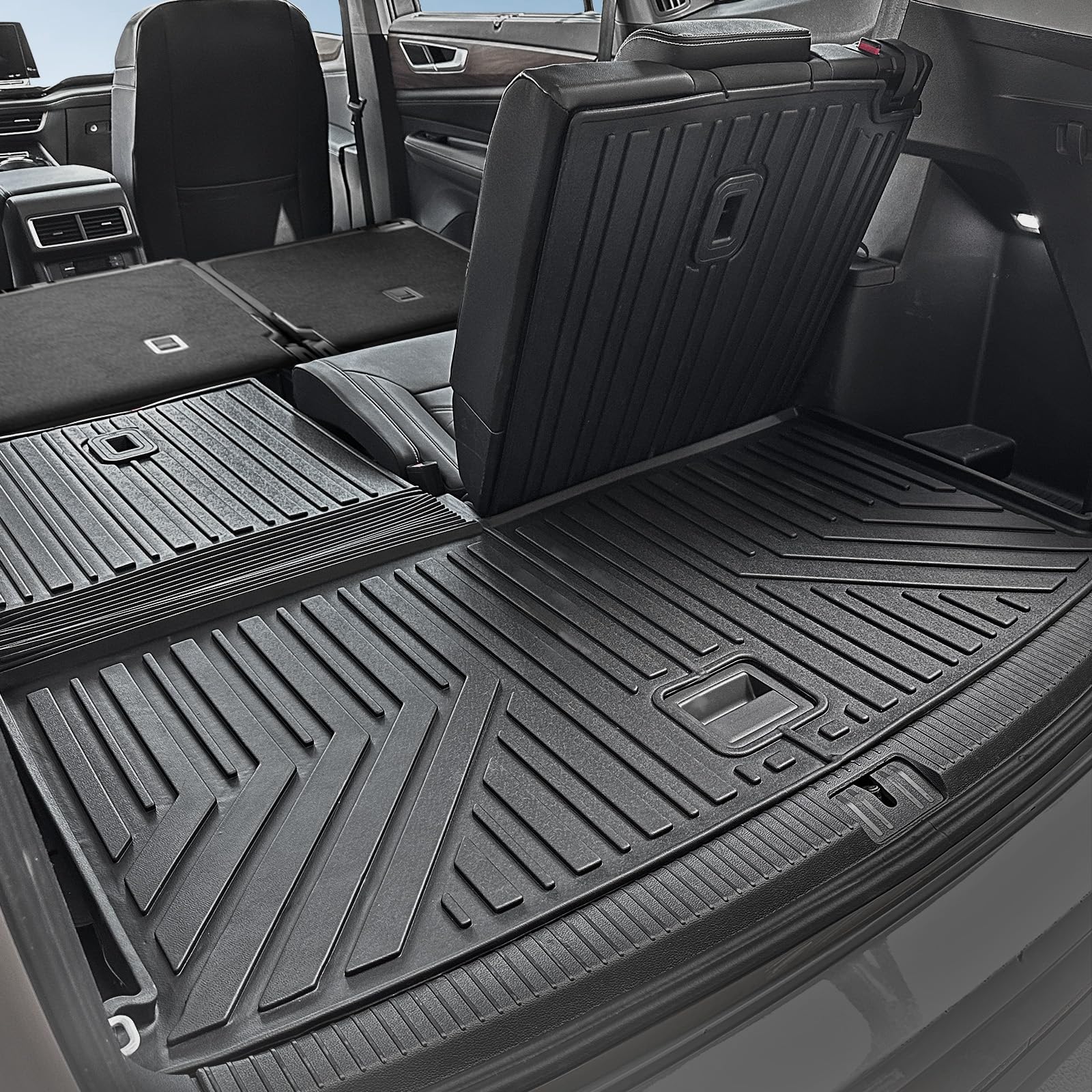 HOUCLEMIC Floor Mats for 2018-2024 2025 Volkswagen Atlas 7 Passenger Bench Seating (Not for Cross Sport)-All Weather TPE Cargo Mat with Backrest Mats for 2025 VW Atlas Car Accessories