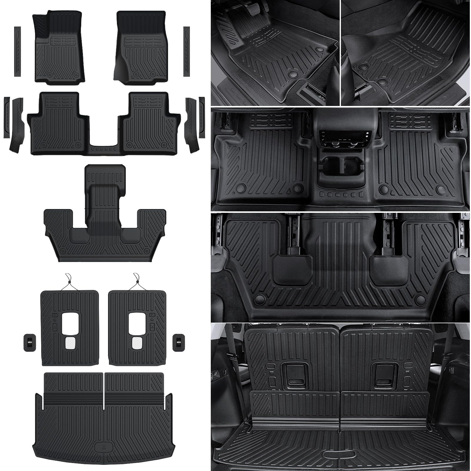 HOUCLEMIC Floor Mats for 2021-2025 Jeep Grand Cherokee L (6-Seater w/o Center Console), TPE Cargo Mat with Manual-Fold 3rd Row Seatback Cover & Door Sill Guards for 2025 Grand Cherokee L Accessories