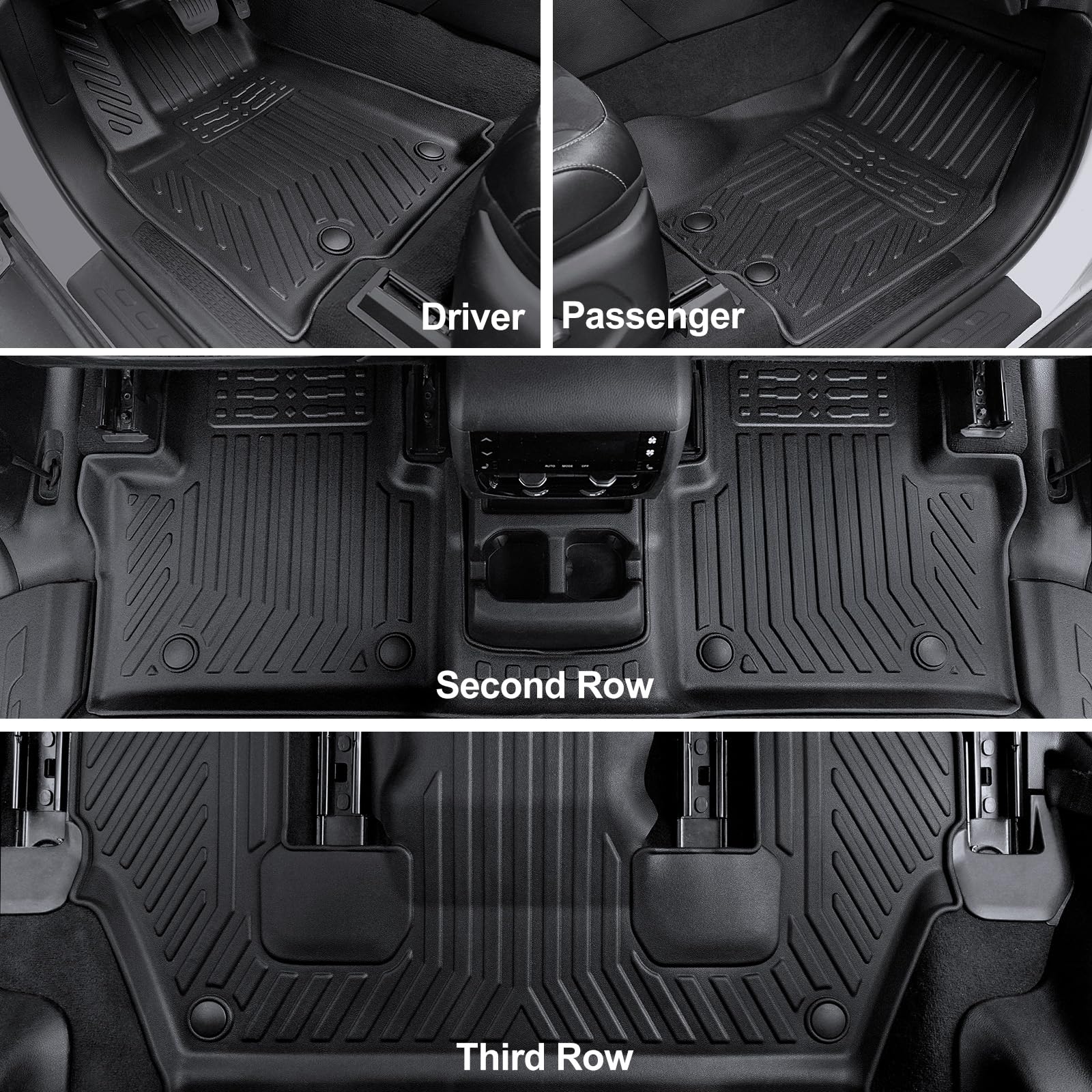 - Custom Fit: HOUCLEMIC floor mats are designed according to the original car, seamless fit for 2021-2024 2025 Jeep Grand Cherokee L captain chair 6 passenger without 2nd row center armrest (Not Fit for Jeep Grand Cherokee), compatible with manual-folding 3rd-row seatbacks. Your package includes all floor mats; cargo mat and 3rd backrest mat; door sill protectors
