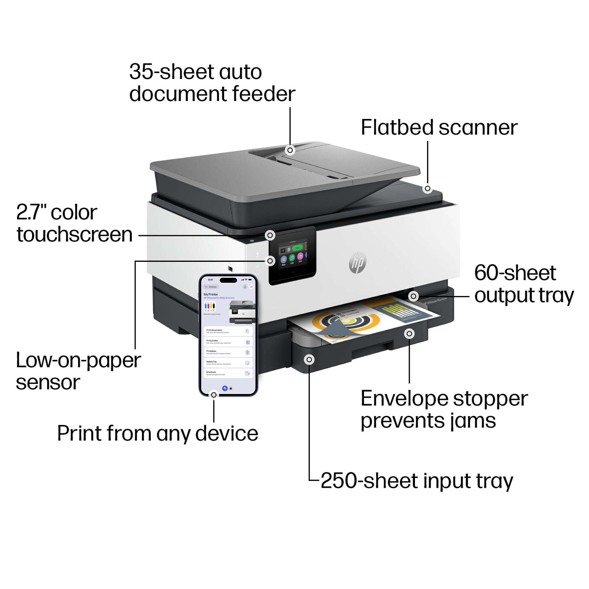 Details: The HP OfficeJet Pro 9125e delivers fast color printing, 250-sheet paper capacity, and duplex scanning and copying. It's AI-enabled to intuitively adapt to your workflow, with wireless and security features that keep your multifunction printer up to date and secure.