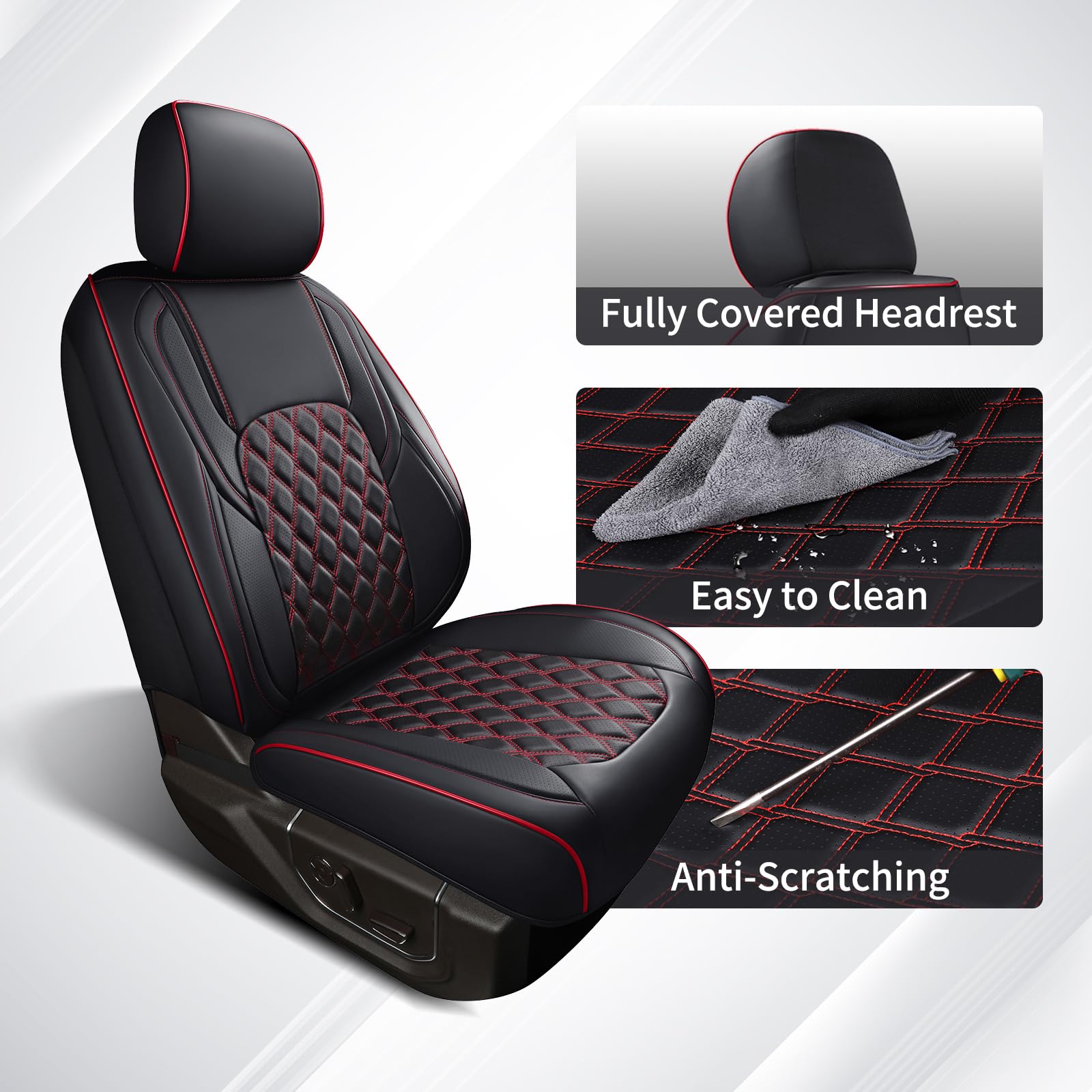 Huidasource Full Coverage F150 Seat Covers Cushion Protector Fit for 2015-2025 Ford F150 SuperCrew & 2017-2025 F250 F350 F450 Super Duty Crew Cab XL XLT Lariat King Ranch Platinum(Full Set/Black&Red)