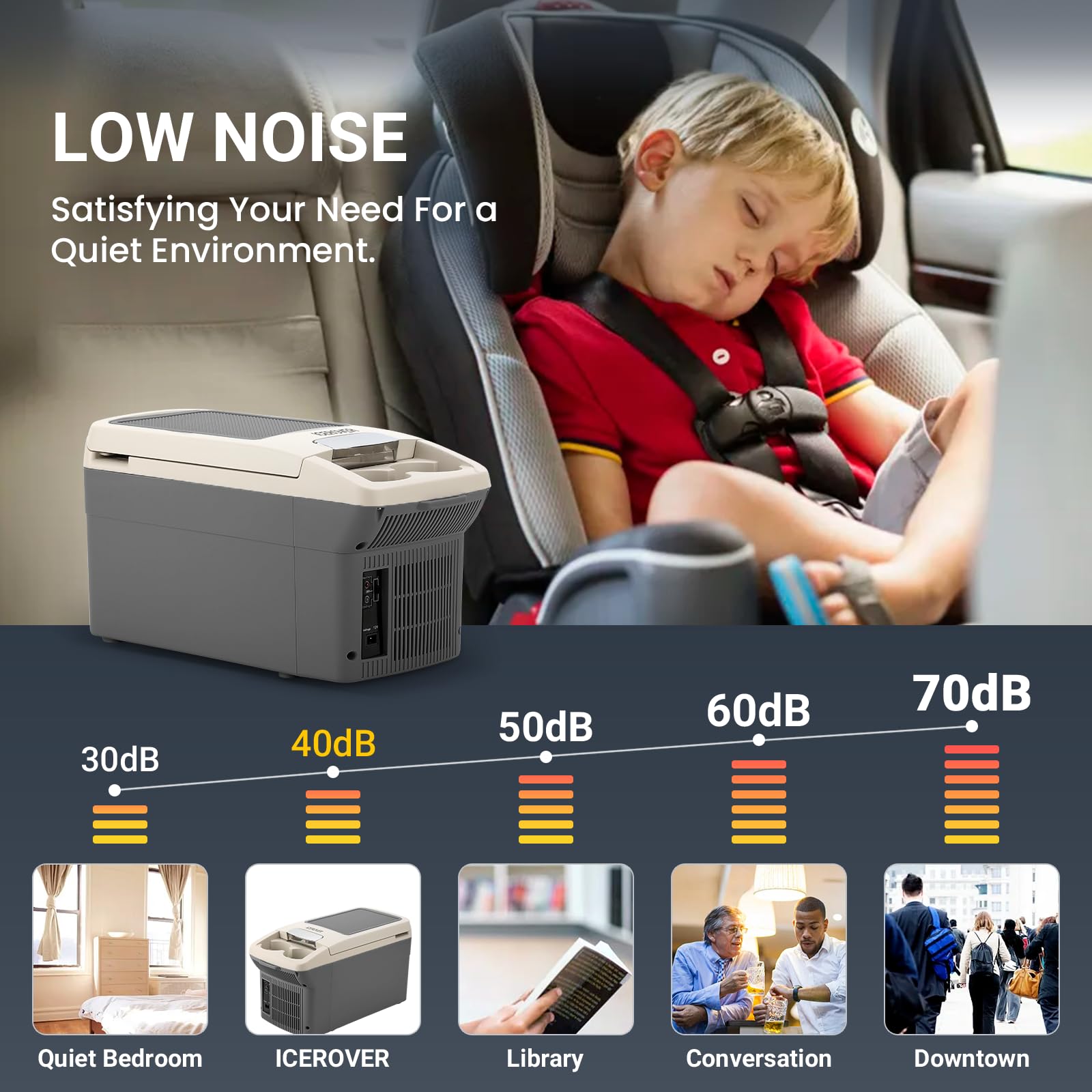- MATERIAL: Unlike other products, our electric cooler features an aluminum inner liner, which enhances cooling and heating efficiency. The 12-volt refrigerator has a premium brushless fan for cooling and heating performance while operating quietly, ensuring a peaceful environment. The mini fridge offers superior durability and a refined texture, even after extended use.