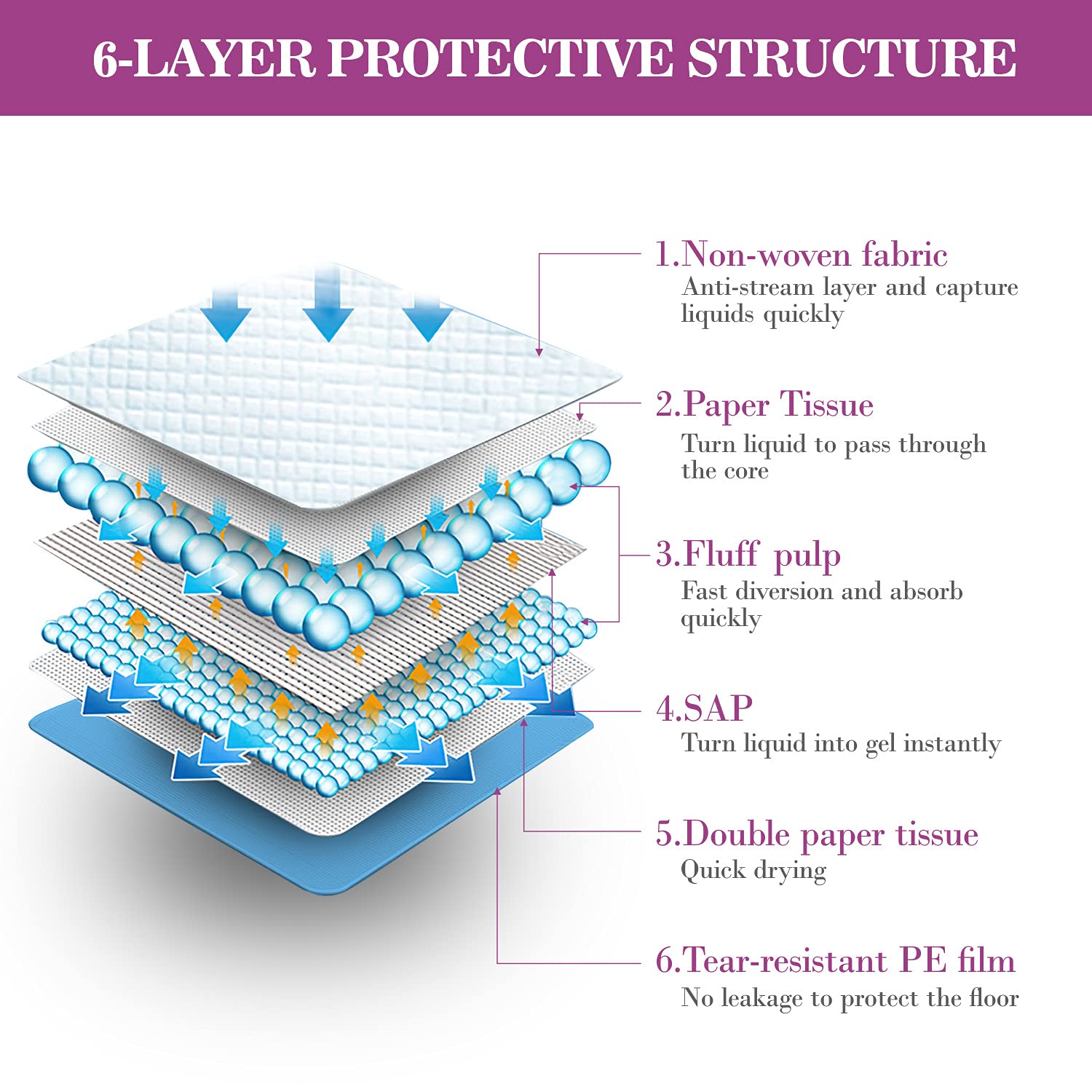 - 【QUICK-DRYING】Unique flash-dry technology quickly turns liquid into gel, preventing tracking, liquid overflow, and bad smell.