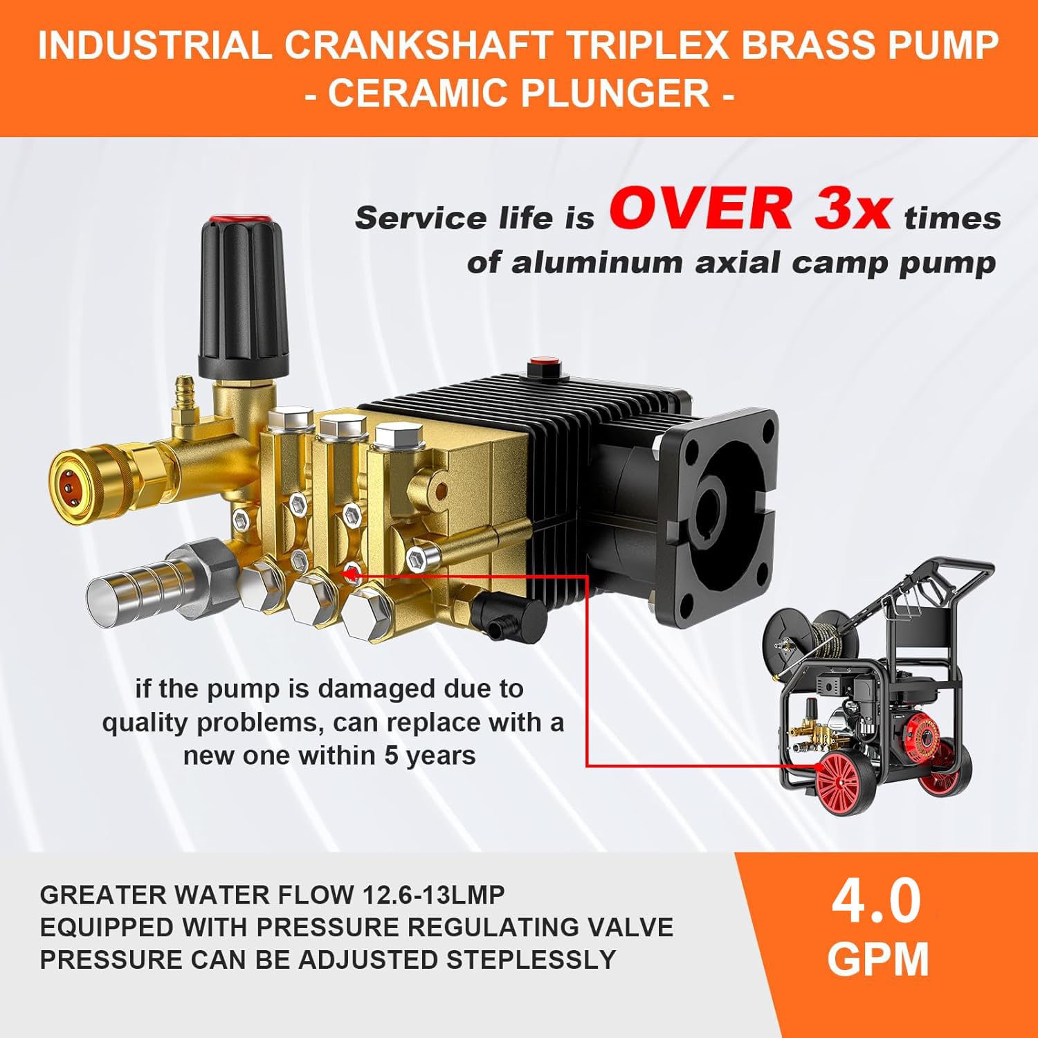 - HEAVY-DUTY ENGINE: Features a 296cc 4-stroke commowner OHV horizontal shaft engine with recoil start and a long-life, maintenance-free axial cam pump that delivers 4.0 GPM for water, providing reliable power for demanding jobs.
