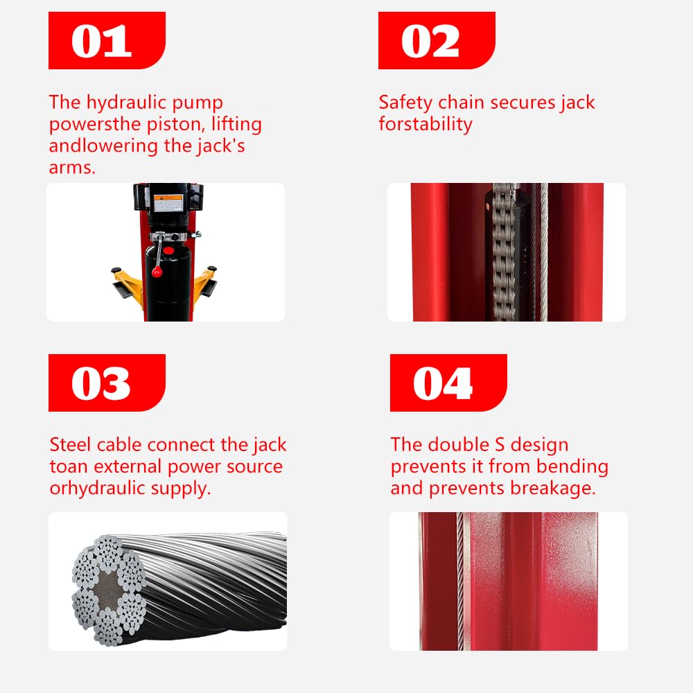 - Screw-on pad and extension support adaptor sets +100mm. Added overhead safety shutoff bar. Feet-protection safety guardrails with tools box. Top level hydraulic system with 220V/60HZ/1PH