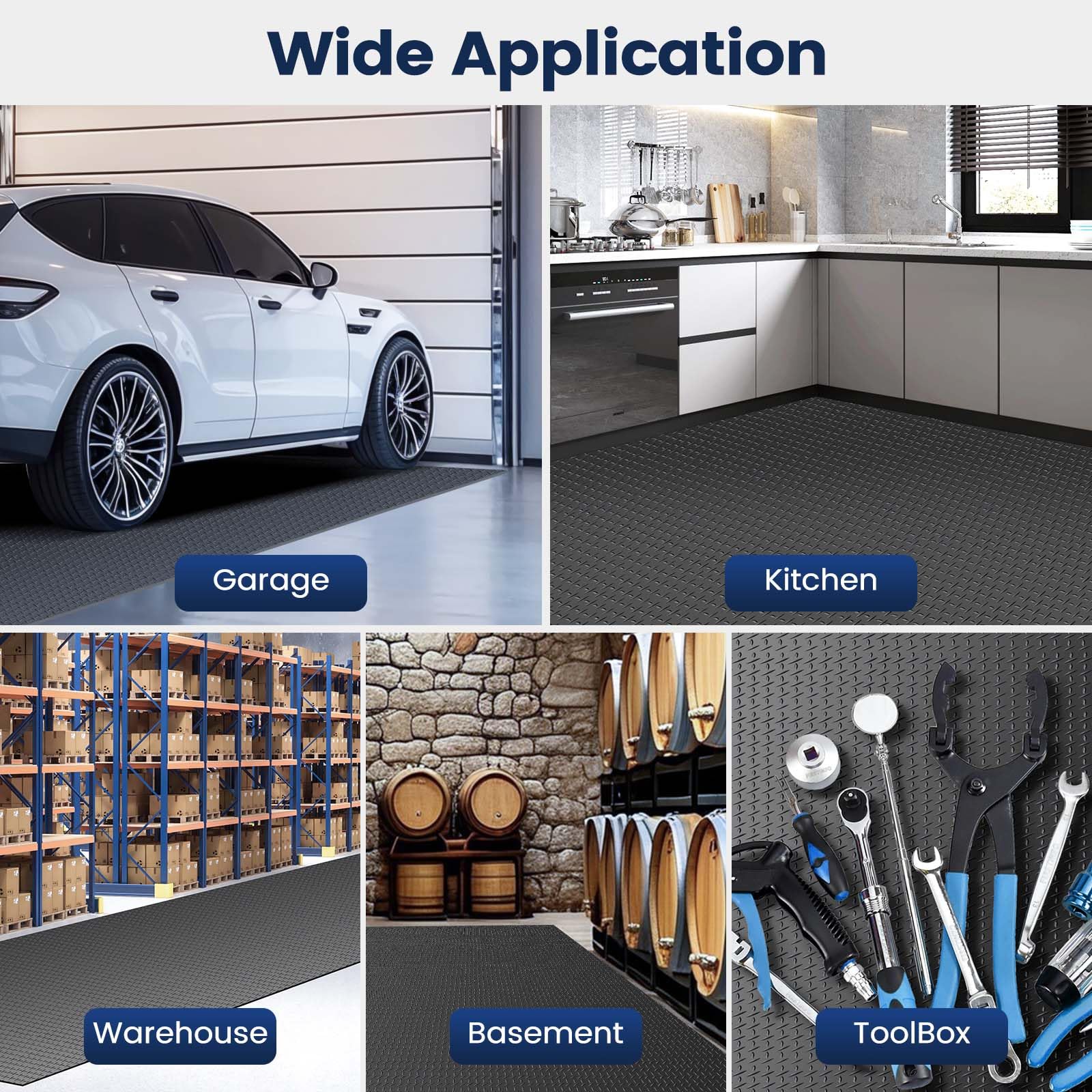 - 【Anti-slip Texture】Garage floor mat uses a treated herringbone texture to increase friction and significantly improve anti-slip performance, providing good grip regardless of whether the ground is slippery or dry.