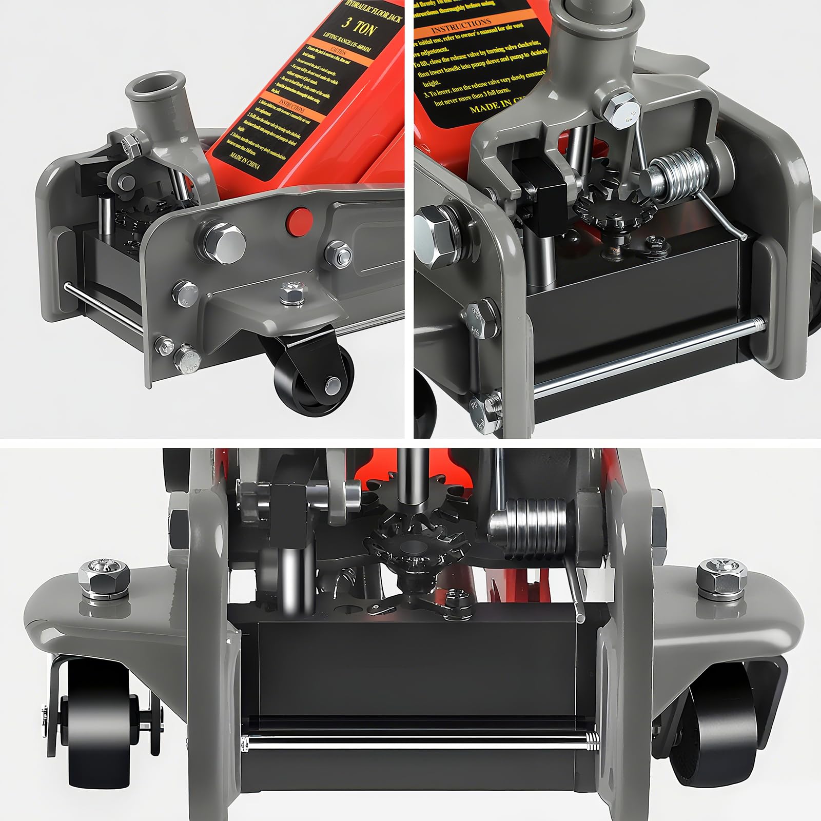 LARBANKE 3 Ton Floor Jack,6600 LBS Heavy Duty Hydraulic Floor Jack with Wheels,Lift Range:5.31'' -18.11'',Carbon Steel Material,Suitable for Home,Garage and Repair Shops,Red