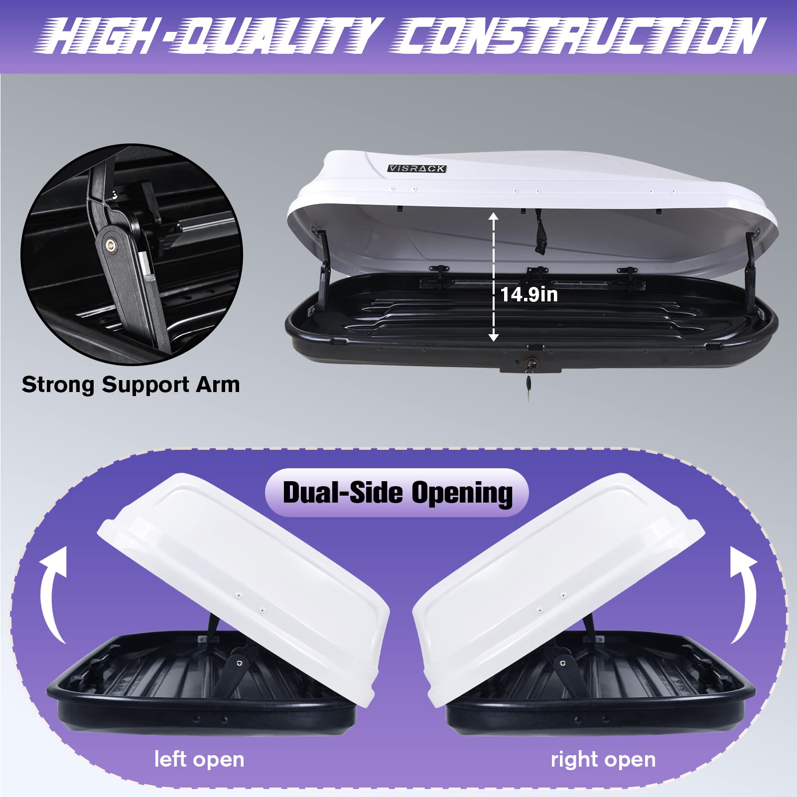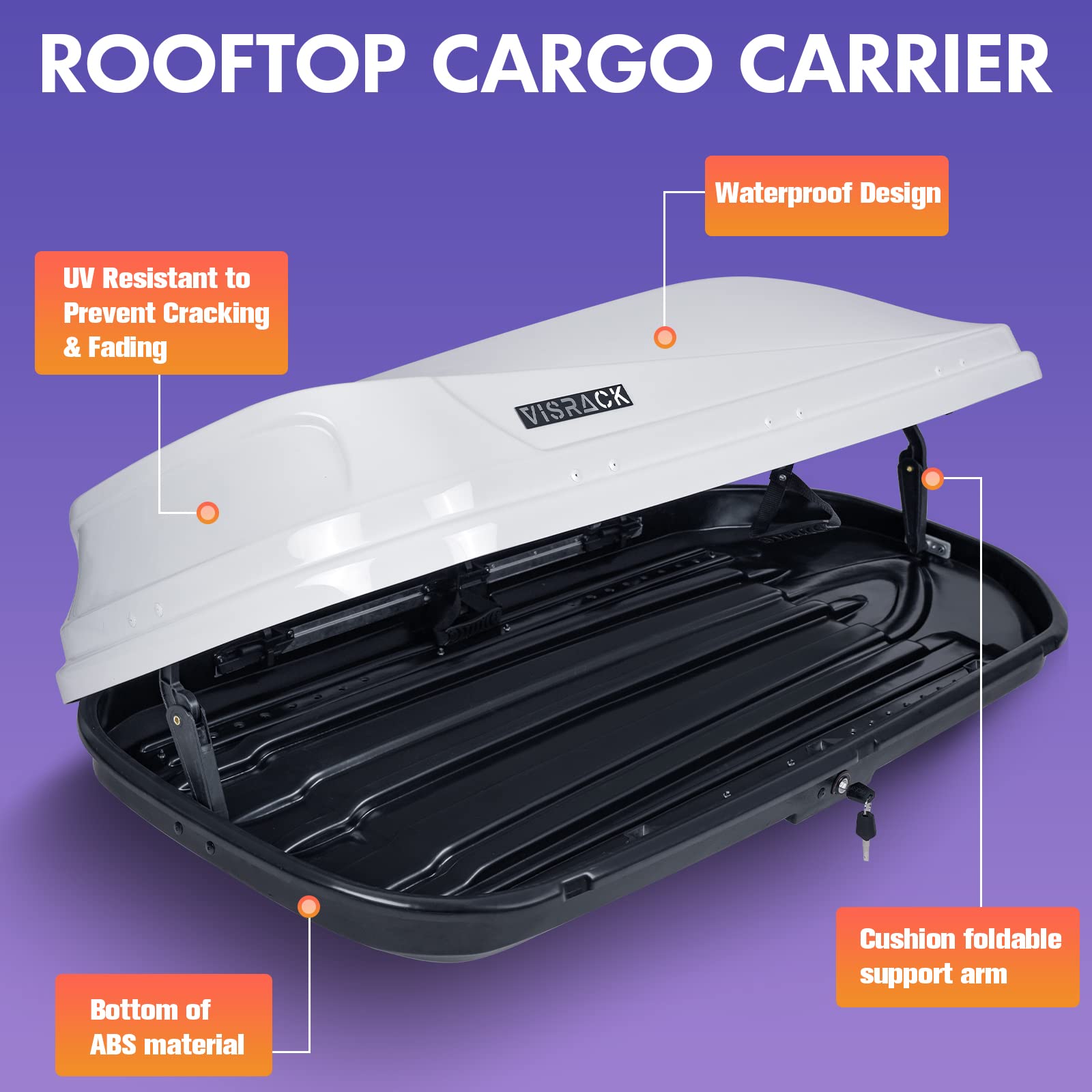 Large Rooftop Cargo Carrier with Roof Box, Heavy Duty Weatherproof Hard Shell Roof, 14 Cubic Feet Rooftop Cargo Box, White