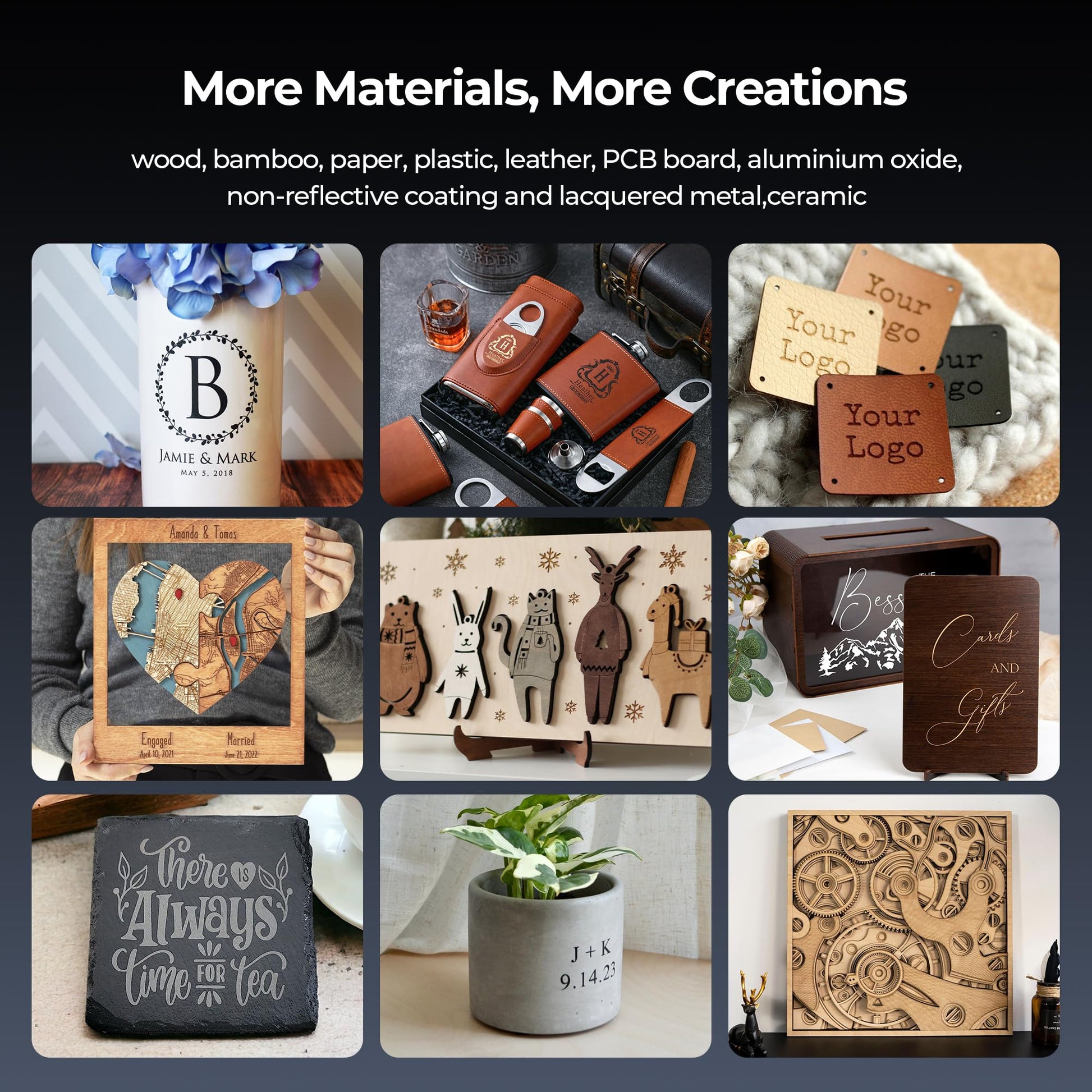 - 【Enhanced Productivity】The S2 diode laser engraver equipped with advanced 32-bit chip, can achieve faster engraving speed up to 10,000 mm/min, which leading the way than many machines on the market, enabling high-volume tasks without compromising precision.The laser wood cutting machine offers a working area of 300x300mm for you to engrave and cut various materials in one go. And you can upgraded with rotary roller(buy extra) and raisers(buy extra) for customizing higher and cylindrical objects.
