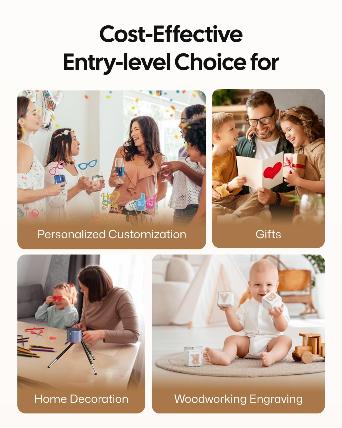 - Compact & Portable: 6.7 oz, 2.56 ’’ × 2.4 ’’ × 2.09 ’’(L × W × H), this tiny gadget perfectly fits in your palm and pouch on backpack, itself can go mobile via USB from any 5 V 2 A power source, such as power bank. Laser your ideas and have fun anytime anywhere