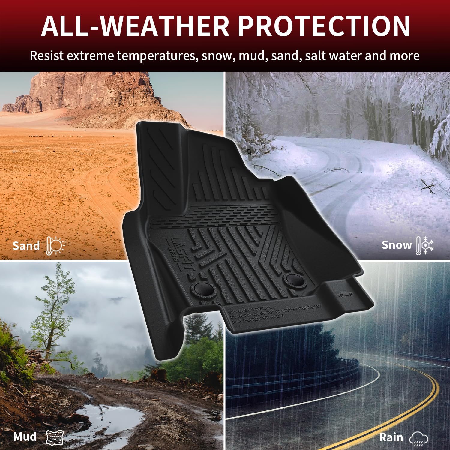 - ALL WEATHER PROTECTION - Lasfit Tacoma floor mats Shield your floor from dirt, mud, salt, rain, snow, and even hot summer temperatures. Cleaning up daily wear and tear off our car mats is a breeze.