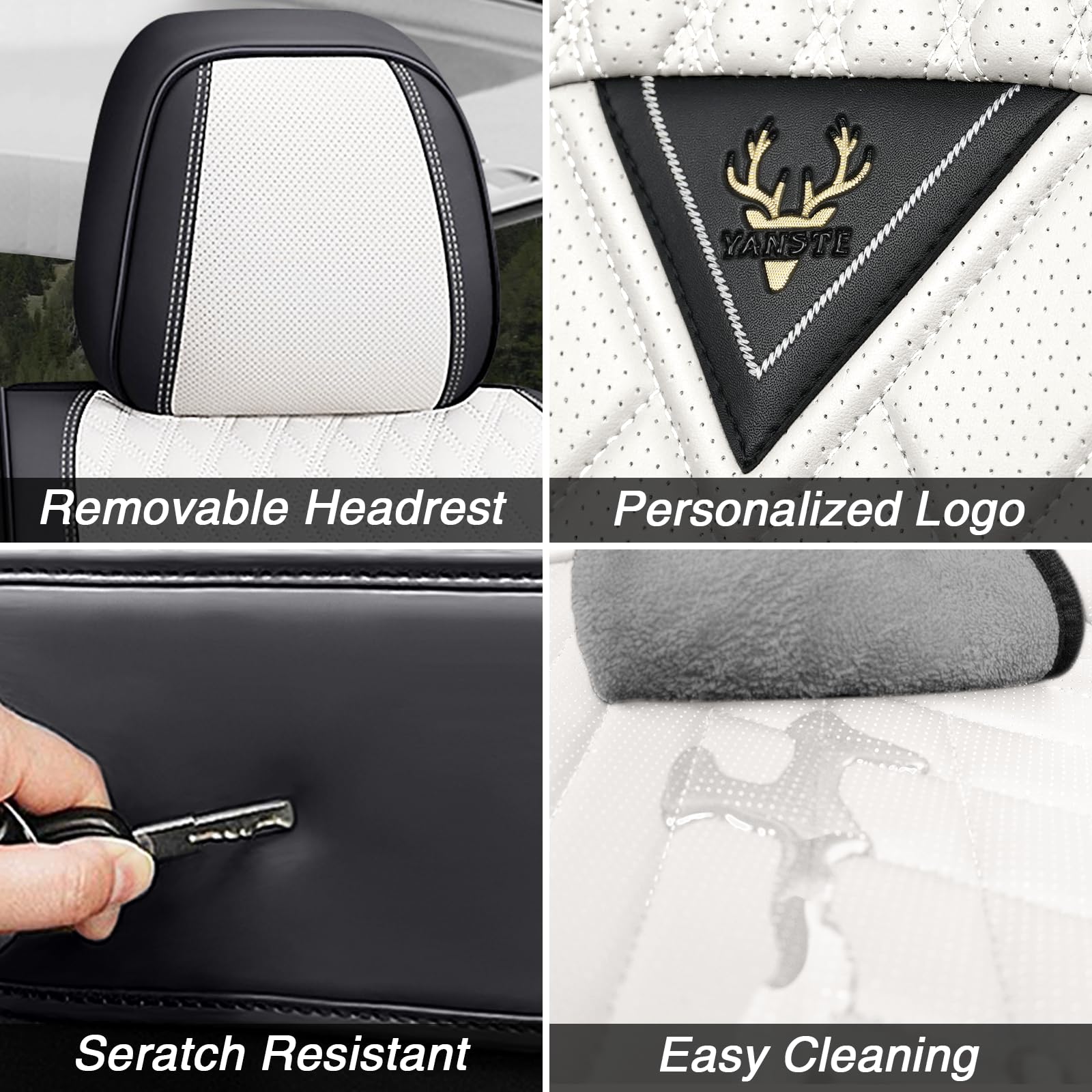 Leather Seat Covers Full Set with Pillow,5 Seats Universal Car Seat Protectors,Easy to Install Cover Set,Waterproof Car Seat Covers Car Seat Cushion Fit for Most Cars SUVs Trucks(5 Seats,Black-White)