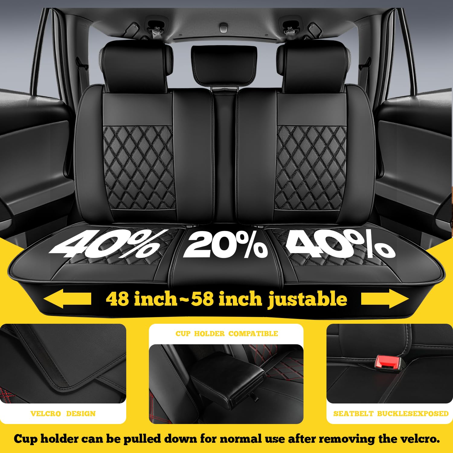 - [UNIVERSAL FIT] Our bench seat cover connection part use the velcro ,distinguished others use the zipper connect,we're more easy to install and adjust length. The bench seat cover could be adjustable at 50~56 inch length, designed to fit most vehicles,such as Sedans, Pickup Trucks,Hatchbacks, Suv, Crossovers, Crew Cab, Vans, Ev.