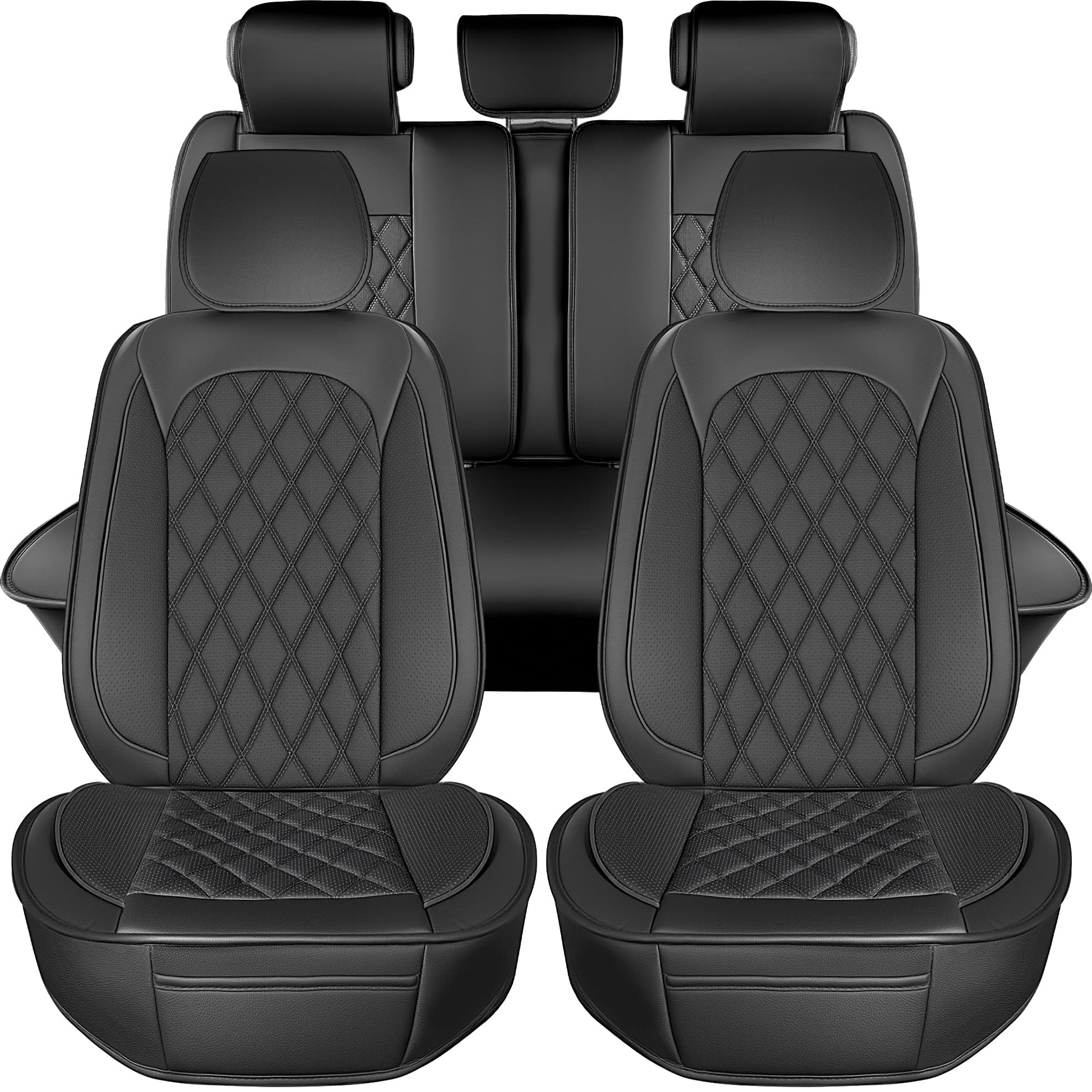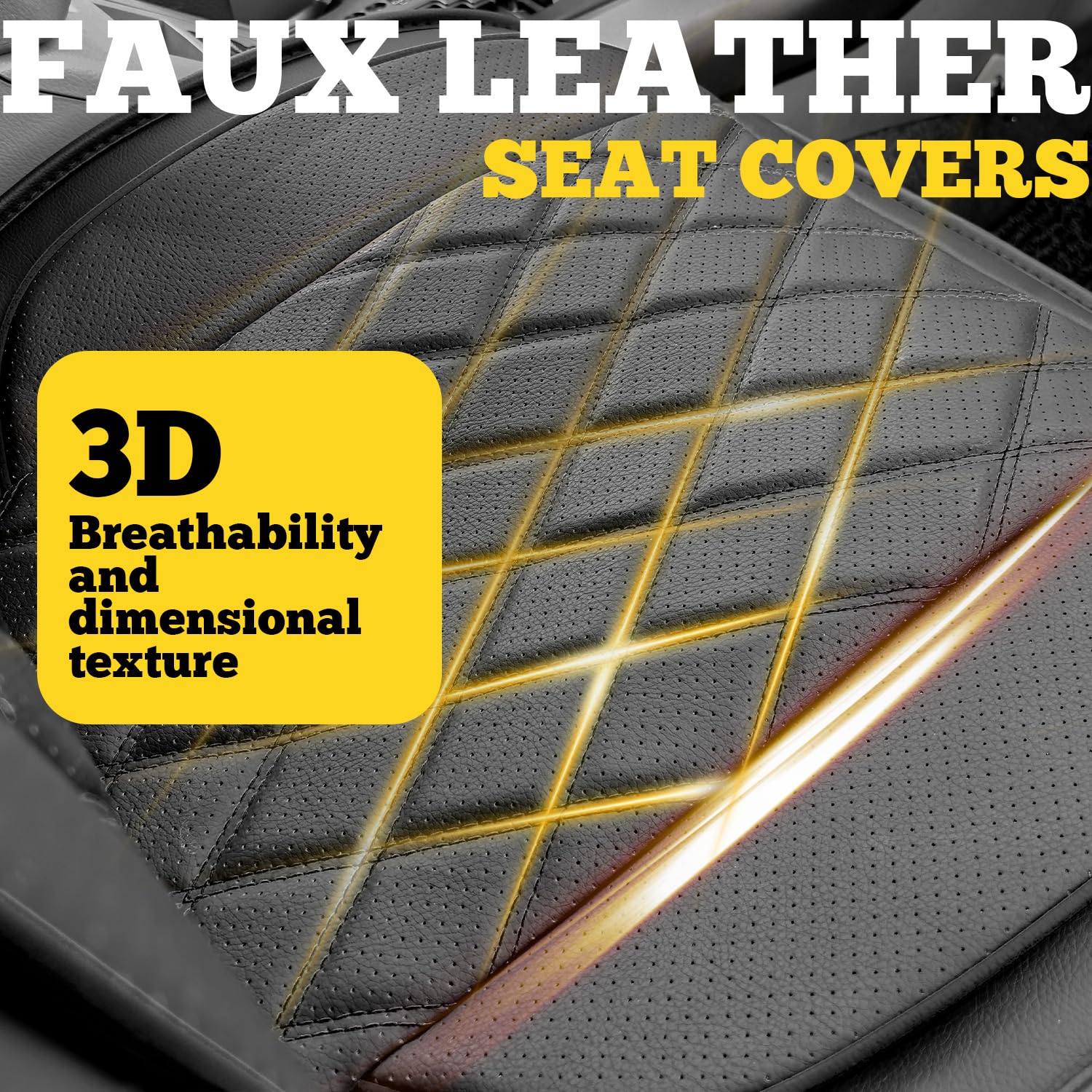 - [HIGH-QUALITY MATERIAL] Surface material made of high quality faux leather which is soft, durable and waterproof,delicacy perforations bring breathable comfort experience.The middle part use high rebound sponge,create top resilience for maximum comfort during your drive. Non-slip fabric is used on the bottom layer,keep the covers in place so you can get in and out worry free.