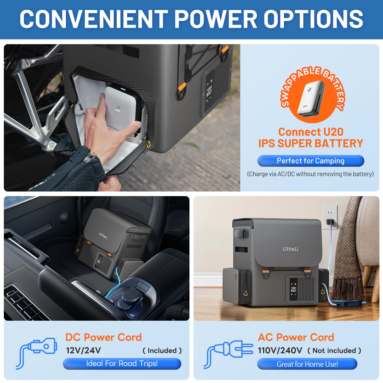 - [What You’ll Get] Professional-grade electric cooler with lifetime technical support. Complete kit includes: 1 Litheli FrozenPack car refrigerator (20L capacity), 2 U20 IPS Super Battery (6hr runtime), 3-way backpack mounting system. *Tip: Our compressor-powered car fridge outperforms thermoelectric coolers in cooling speed and temperature range.