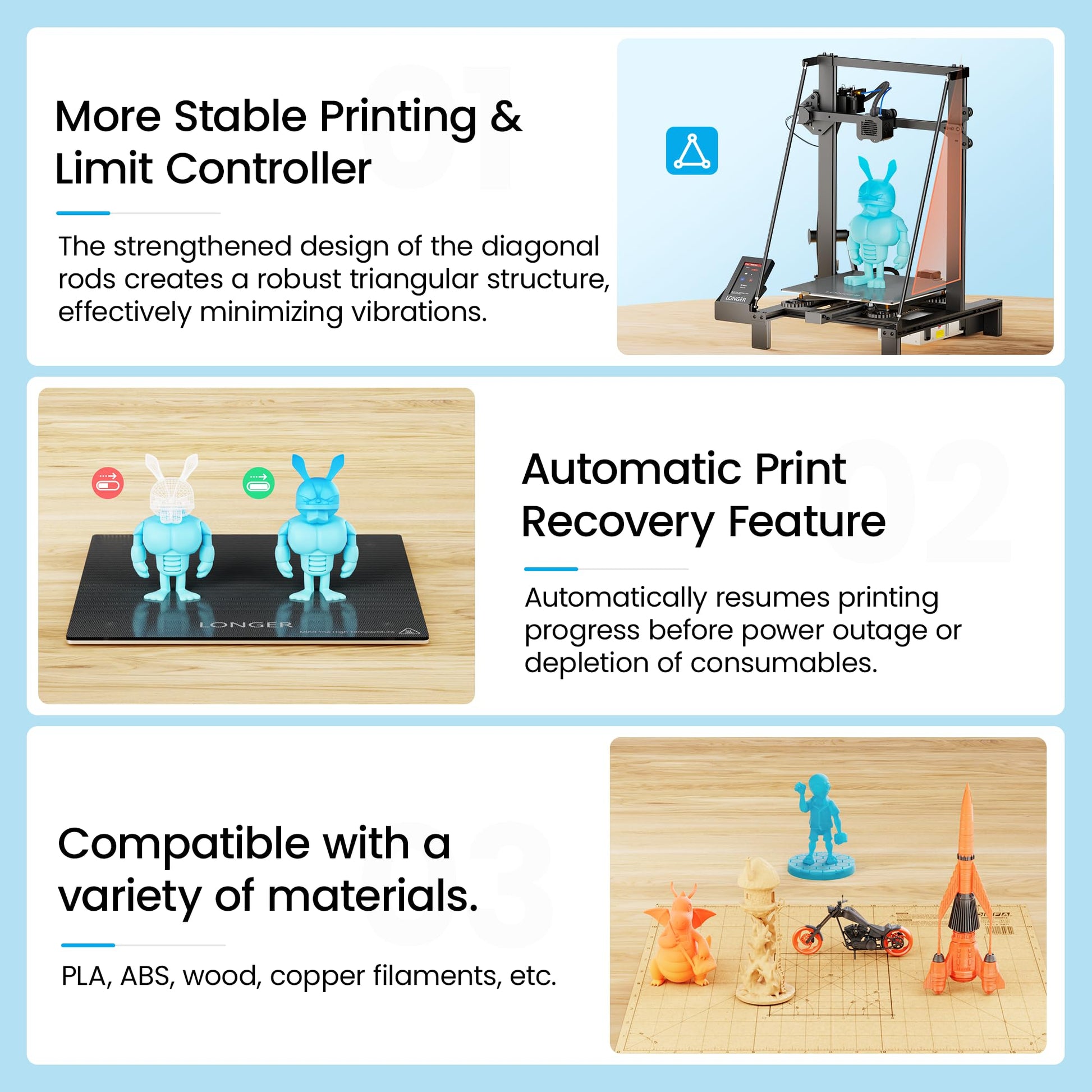 - 【Maximum Build Size & Material Compatibility】Unlock boundless creativity with Longer LK5 Pro 3D printer, featuring a maximum build size of 11.8' x 11.8' x 15.7' (300*300*400mm). Enjoy a larger canvas for your 3D printing projects, providing more room for innovation. This printer is designed to be compatible with a variety of printing materials, ensuring it meets the diverse needs of your 3D printing endeavors.
