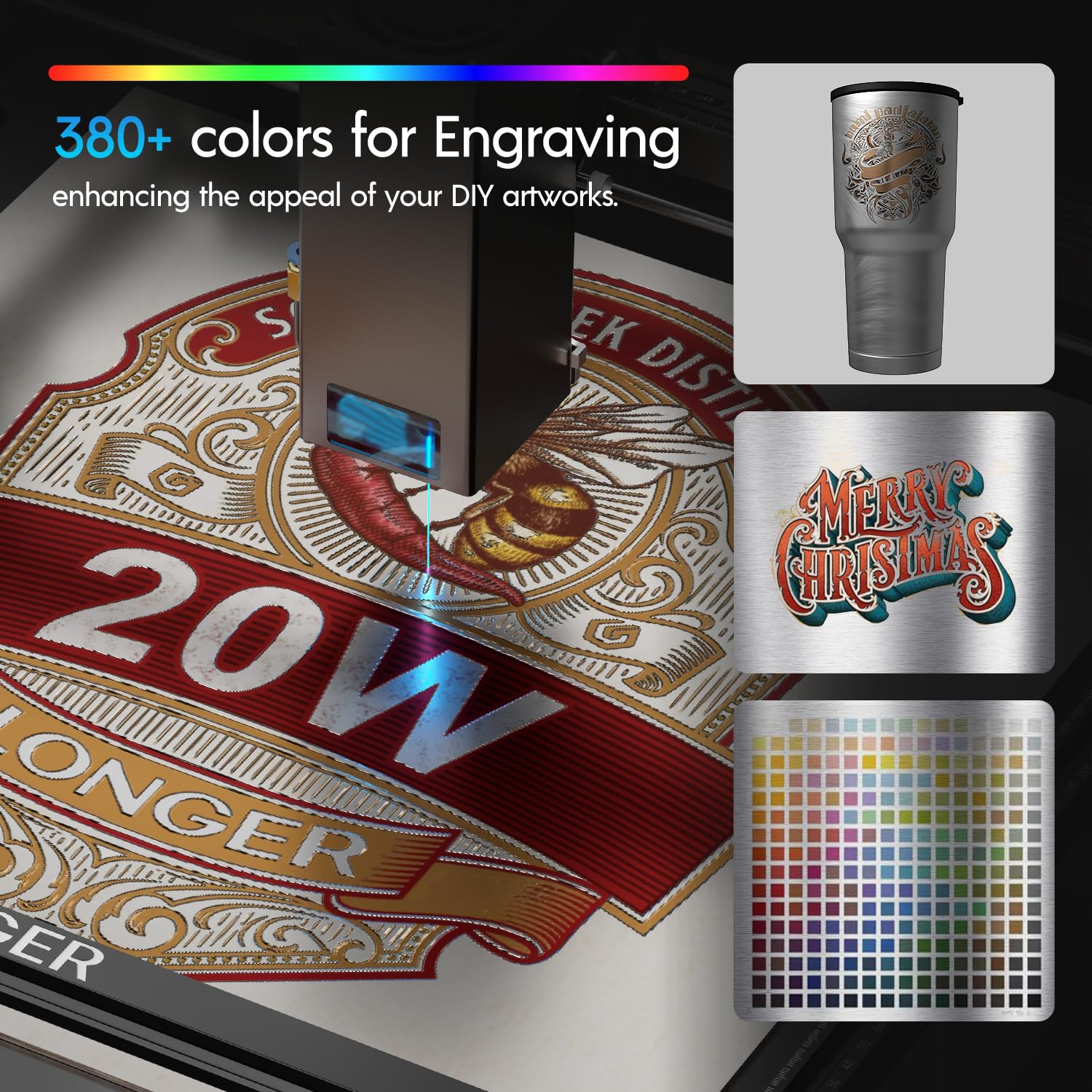 - Rich Color Engraving: The Ray5 20W laser engraver offers unique technology for over 380 color engravings on metal, enhancing your DIY art. This colorful capability boosts visual appeal and market attractiveness, making each piece distinct and full of personality.