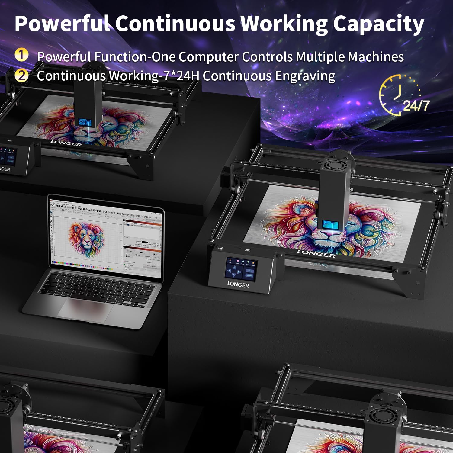 - 【Multiple Machines Control】Ideal for commercial use, one computer controls multiple laser engravers. The Ray5 20w can work parallelly with control of only one terminal, you can set a number of units engraving and cut together, superb reliability-7*24H continuous engraving and improve production efficiency. Suitable for professional offices, workshops, or factories.Efficiently serving your business