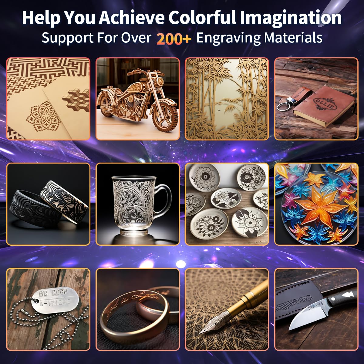 - [3.5' Color Touchscreen & 4 Connection Methods]Features a built-in 3.5' Color Touchscreen. You can quickly and easily ceck the engraving progress, adjust the engraving speed, and perform other operations directly through the touchscreen. Offers 4 convenient connection modes including USB, TF card, WiFi, and APP, widely compatibility with professional engraving software such as LaserGRBL and LightBurn.