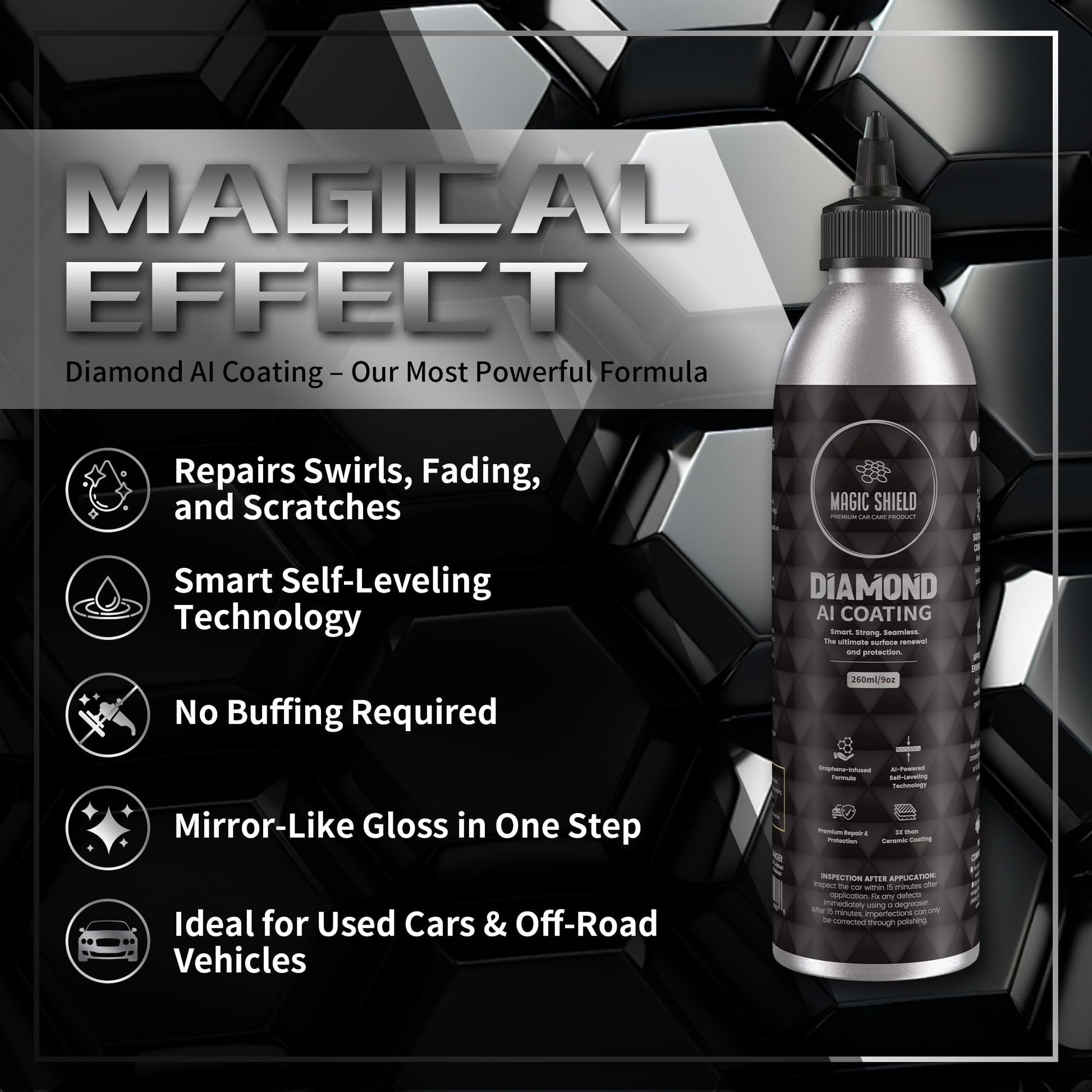 Magic Shield Diamond AI Coating β Graphene Liquid Self-Leveling Techology | Repairs & Protects | Last for 10 Years | High-Gloss Shine | Hydrophobic & Scratch-Resistant | for Car Paint, Headlights ONLY