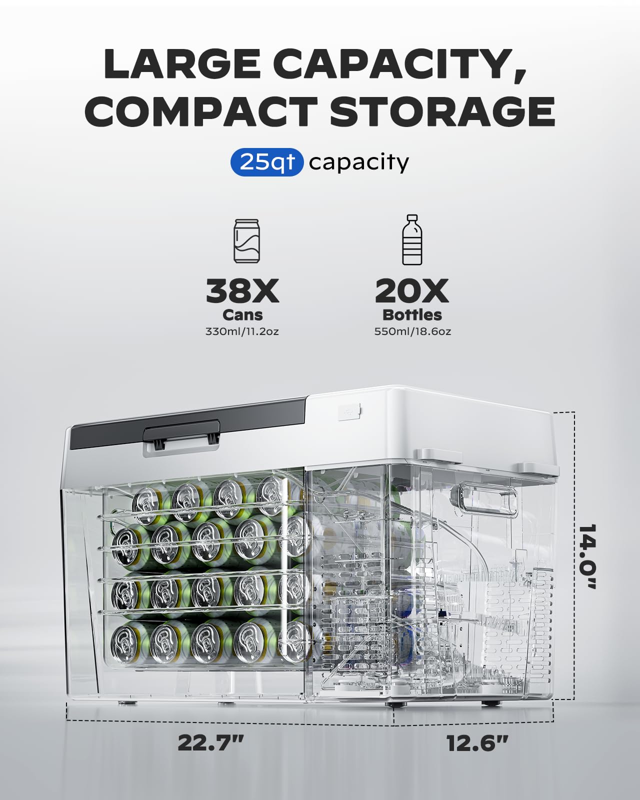 - Compact 25QT Design for Efficient Storage:The 25QT portable freezer offers just the right amount of space for essential foods and drinks, holding up to 38 cans of 330ml drinks. This car fridge is compact, portable, and great for small groups or short trips, providing ample space without taking up unnecessary room.