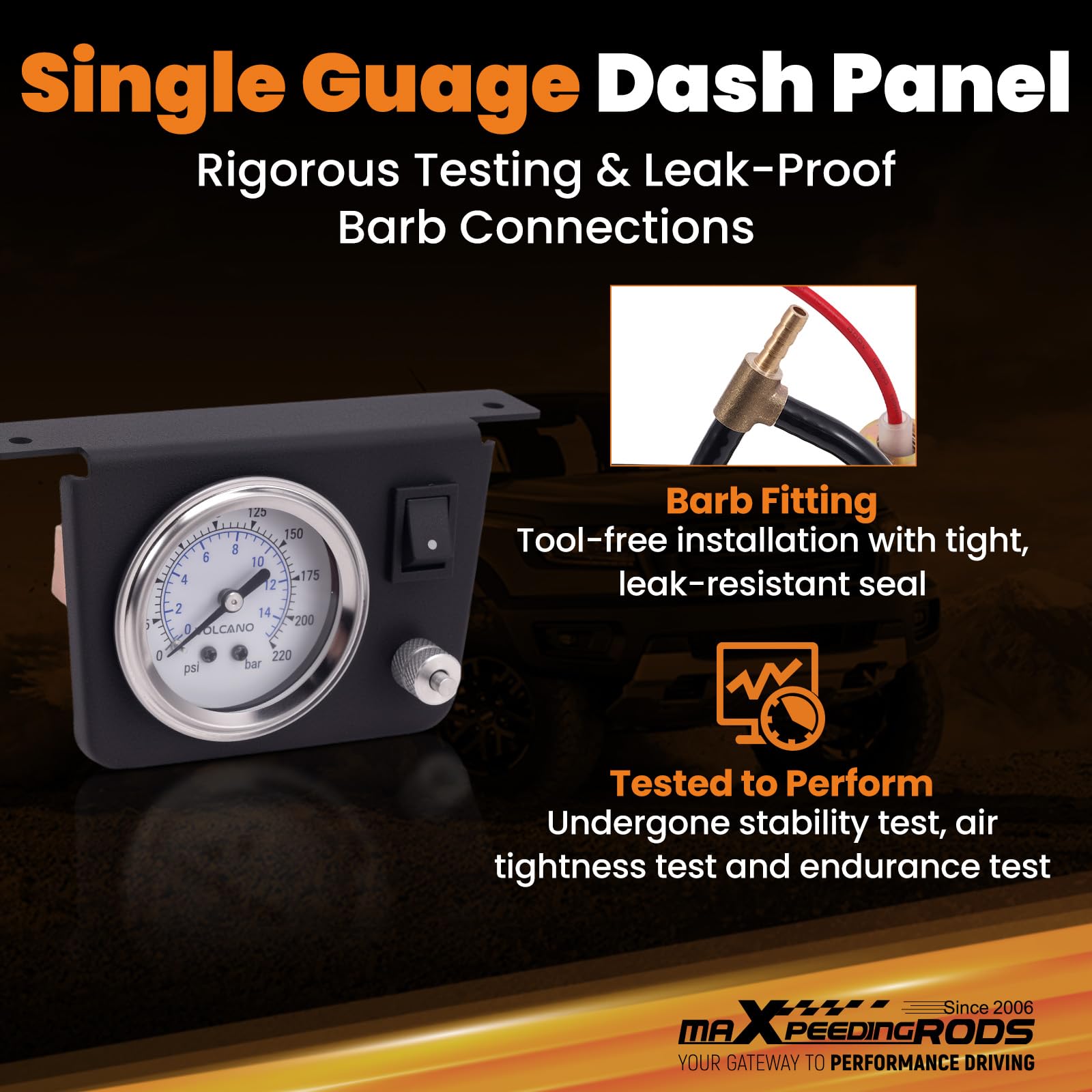 maXpeedingrods On Board Air Compressor System Up to 120 PSI Air Spring Compressor Kit with Analog Gauge Air Line T Fittings Single Path System for Trucks Vans
