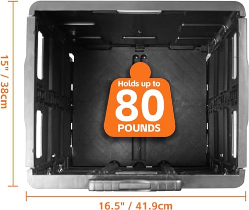 Details: MaxWorks Rolling Utility Cart/Folding Dolly with Lid is designed to make life easier. Firstly, DOLLY WITH ADJUSTABLE HANDLE AND STORAGE SPACE makes this dolly a perfect roller cart with storage for carrying items like work tools, groceries… and more. The 2 wheels are the plus to make the cart roll smoothly for efficiency. Secondly, ADJUSTABLE TELESCOPING ALUMINUM HANDLE (Maximum lengths to 39”) with a push-button that can easily extend and extract to different lengths for your comfortable use. Thirdly, LID can support heavy duty up to 250lbs (113kg) and can be used as a step stool or seat. Portable Storage on the wheels, as the cart only weighs 6 pounds but can hold up to 80 pounds. Lastly, portable Storage on the wheels, as the cart only weighs 6 pounds but can hold up to 80 pounds.