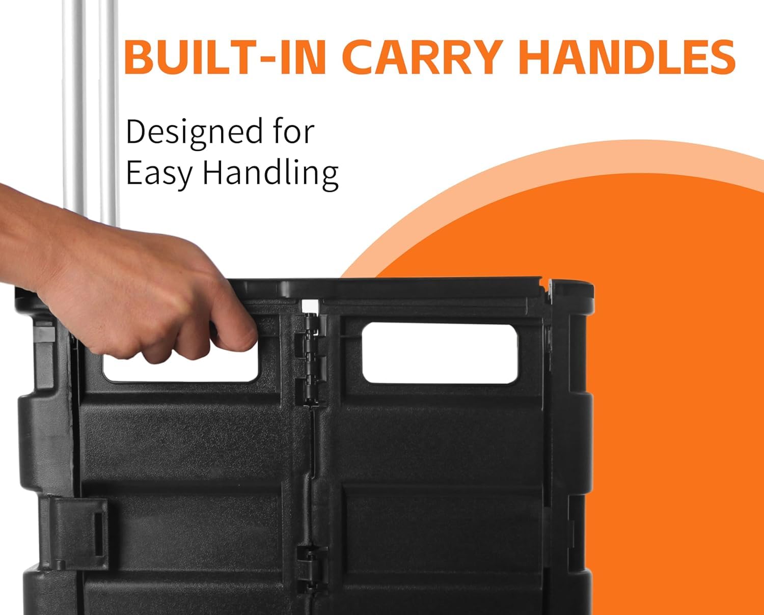 MaxWorks 50830 Collapsible Black Rolling Folding Dolly Cart for Teachers - Multi-Functional Teacher Dolly with Extra Storage, Durable Wheels, and Easy-to-Fold Design for Classroom, Office, Shopping