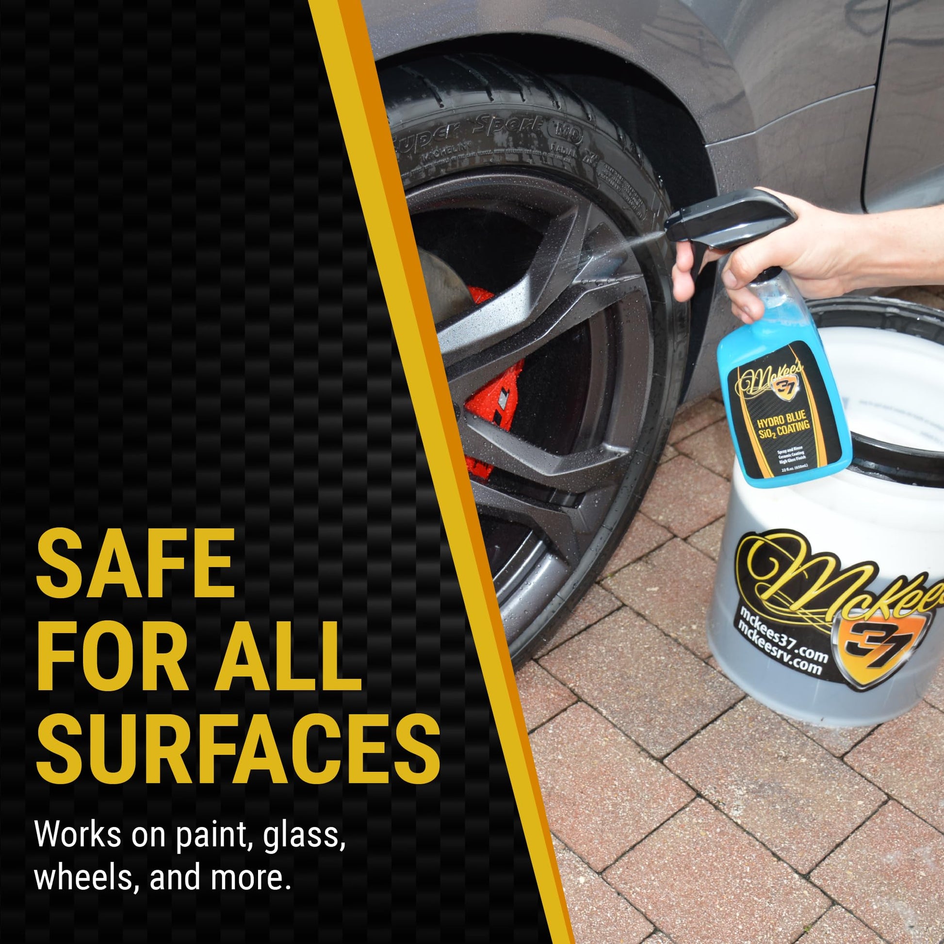 Details: Want your car to look amazing and stay protected from the elements? McKee's 37 Hydro Blue SiO2 Coating is the answer! This incredible spray-on coating uses advanced technology (SiO2, or silicon dioxide, is a super-strong ingredient found in glass and high-tech ceramics) to create a protective shield that makes water bead up and roll right off your car. It also gives your paint a deep, glossy shine that will make your car the envy of the neighborhood. Simply spray it on your wet car after washing and rinse it off. It's that easy! McKee's 37 is dedicated to providing premium-quality car care products that deliver exceptional results. As featured on Rutter’s Detailin’ Garage on Speedvision, McKee's 37 is trusted by professional detailers and car enthusiasts to provide the highest level of performance and protection for their vehicles. Our innovative formulas are designed to make car care easier and more effective, so you can spend less time cleaning and more time enjoying the ride. With easy-to-follow instructions and informative resources, achieving professional results at home has never been simpler.