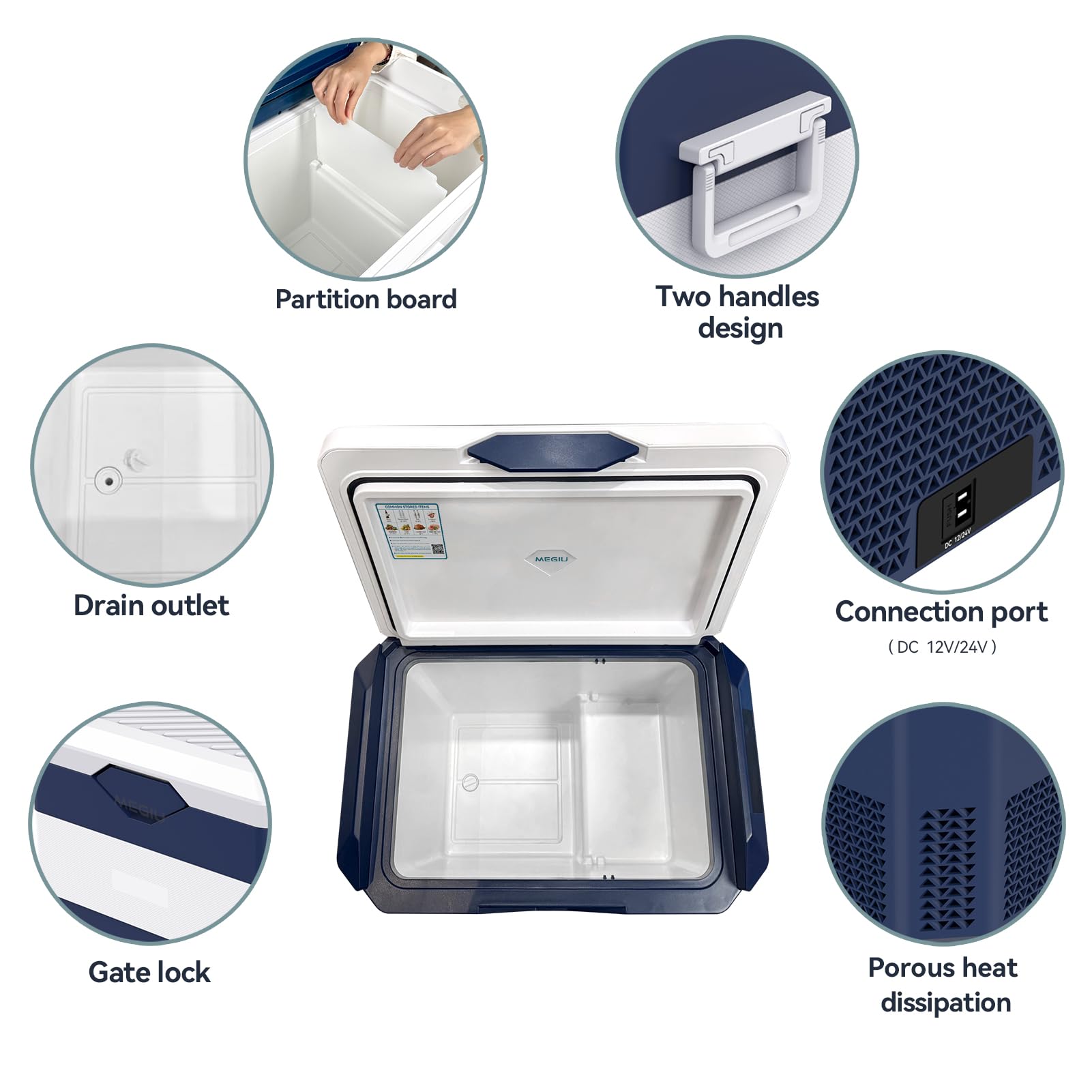 Megiu 12 Volt Refrigerator Car Fridge Portable 12V 45 Quart Freezer Compressor Cooler 12V/24V DC 110~240 V AC for Truck Van RV Camper SUV and Home Use