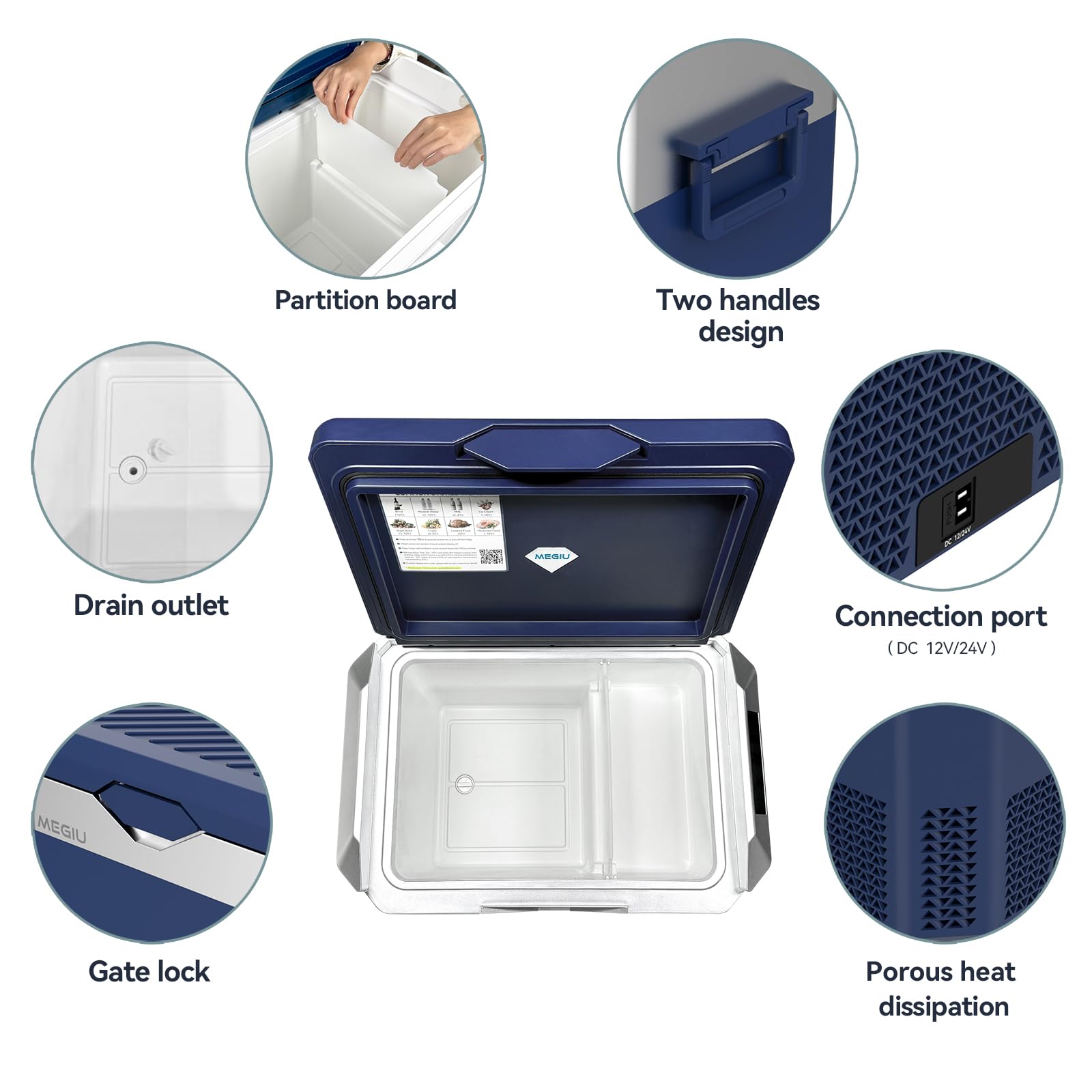 Megiu Car Fridge Portable 12V Refrigerator 32 Quart 12 Volt Freezer Compressor Cooler 12V/24V DC 110~240 V AC for Truck Van RV Camper SUV and Home Use