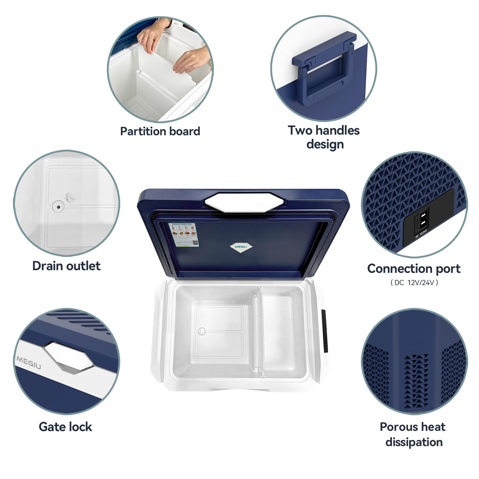 Megiu Car Refrigerator Portable 12V Fridge 32 Quart 12 Volt Freezer Compressor Cooler 12V/24V DC 110~240 V AC for Truck Van RV Camper SUV and Home Use