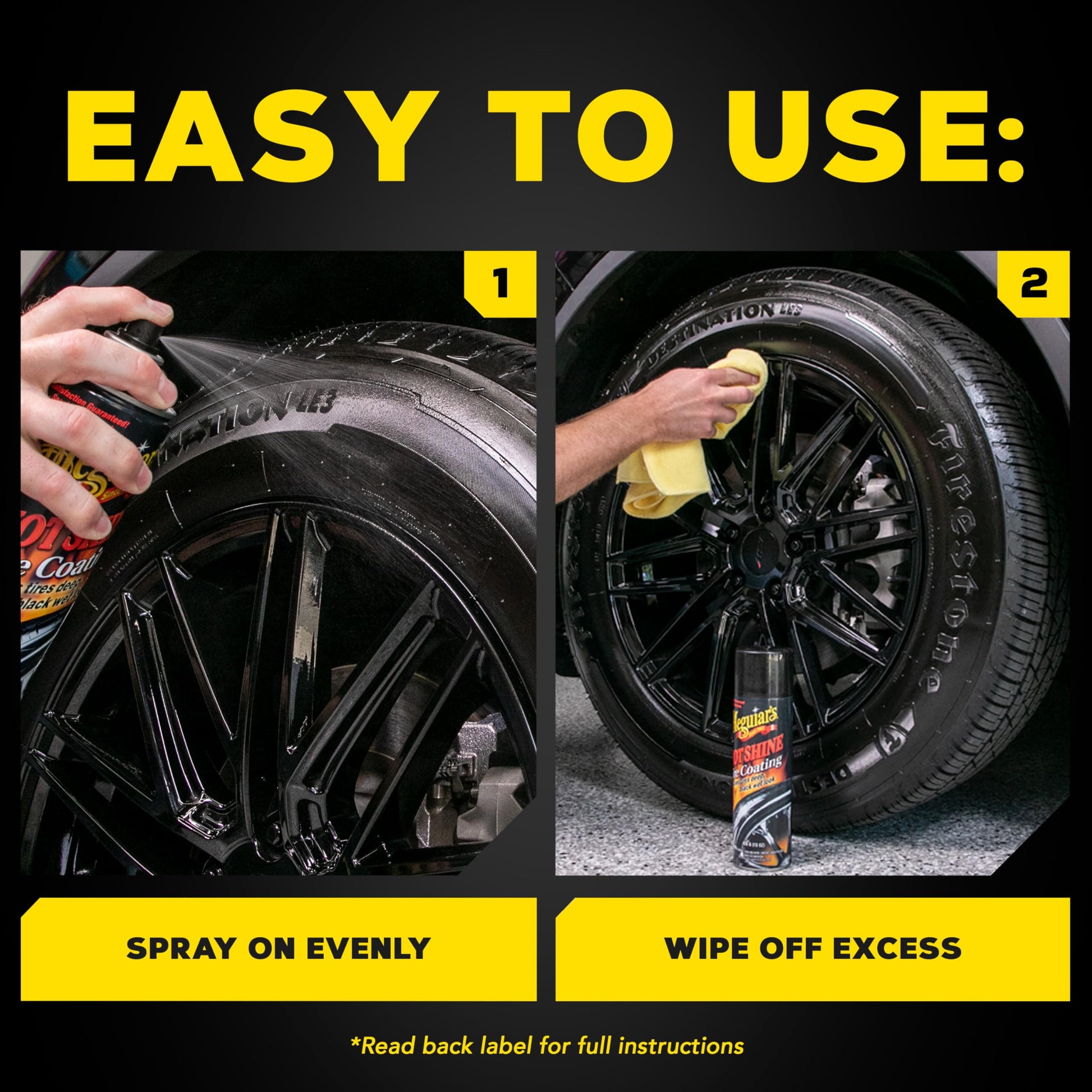 - PRESERVE AND PROTECT: With Meguiar's Hot Shine in your car cleaning kit, your tires get more than just a stunning shine; This high gloss tire coating actively preserves and protects your tires, preventing cracking, browning, and premature aging
