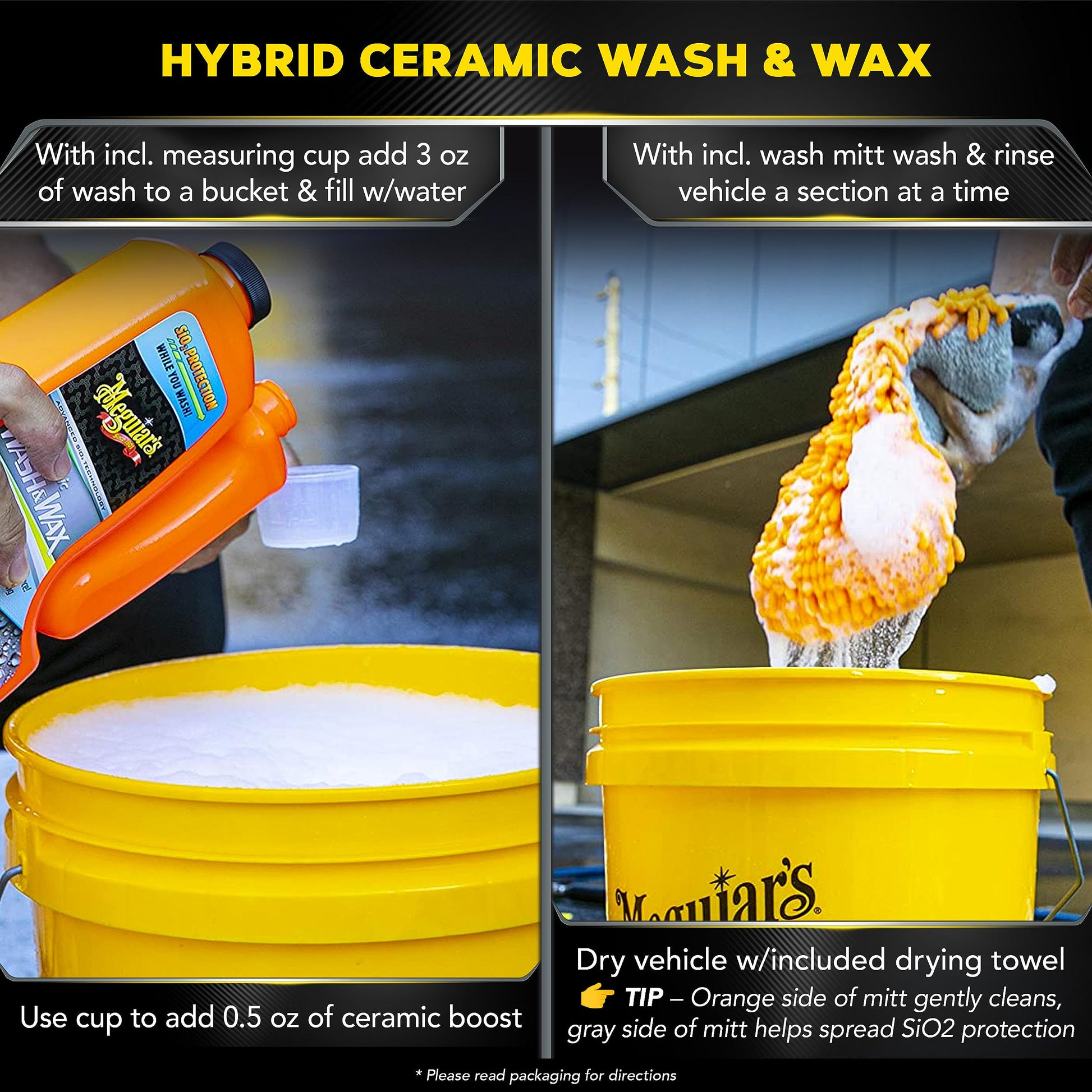 - CAR WASHING WITH WAX: Gently clean, enhance shine, and get extreme water beading and streak-free results with our Hybrid Ceramic Wash Wax. The included microfiber wash mitt for outstanding cleaning while leaving behind additional protection