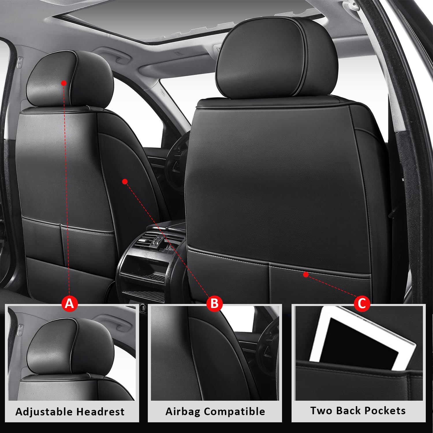 MIROZO Seat Covers Full Coverage,Waterproof Car Seat Covers Full Set Leather Car Seat Protector Automotive Seat Covers Universal Vehicle Cushion Cover Fit for Cars SUV Pick-up Truck(Black,Full Set)
