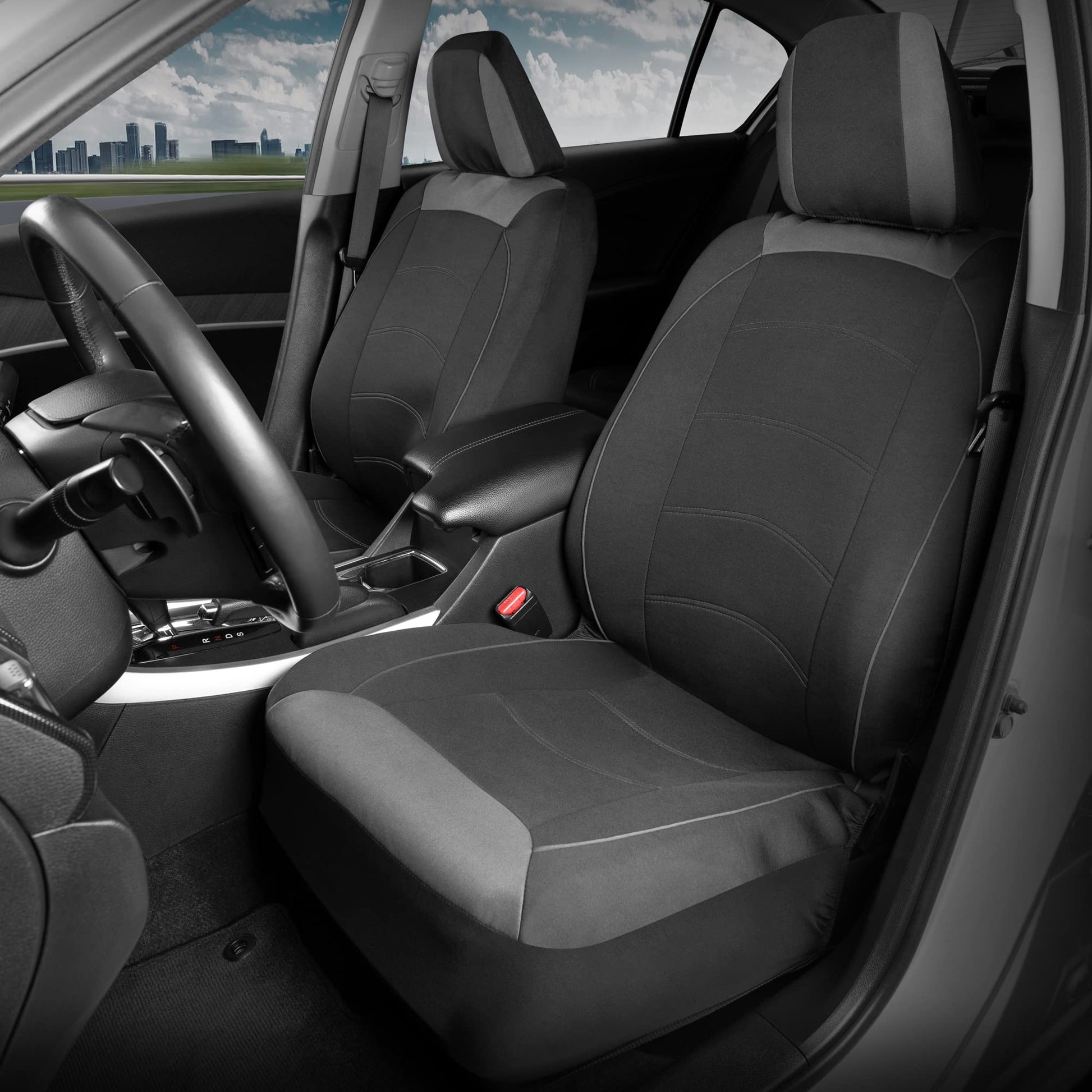 - STYLISH DESIGN – Refresh the look of your car and turn some heads along the way. Our seat cover set features a modern two-tone design with stitched accents and piping to add a splash of color to your interior.
