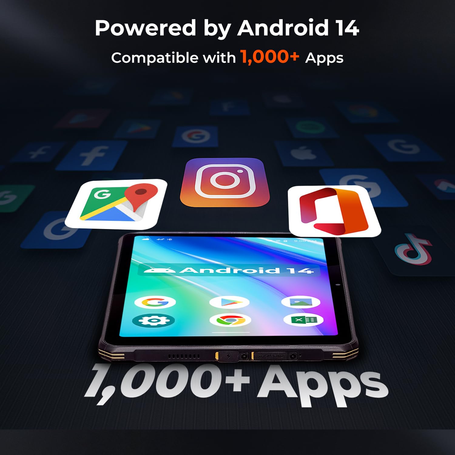 - [Cutting-Edge Performance]: As the latest version of the Android operating system, Android 14 provides MUNBYN rugged tablet ILT02 with the most advanced features and security updates, easily supporting over 1000 applications. Additionally, the Mediatek 8781 CPU delivers at least twice the performance of other CPUs. Whether running inventory management software, multitasking, gaming, or video playback, this tough tablet ensures an ultra-smooth and highly responsive user experience.
