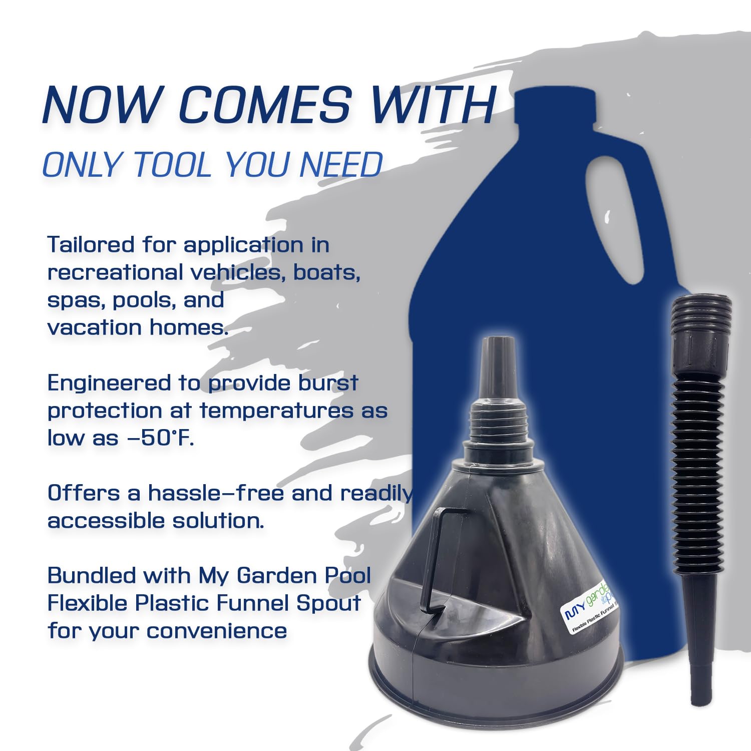 - My Garden Pool Funnel Spout: Included in the bundle is the My Garden Pool Plastic Funnel Spout, designed to seamlessly fit onto the Splash Purple bottle. This funnel spout enhances the application process, ensuring precise and mess-free pouring for an efficient winter care routine.