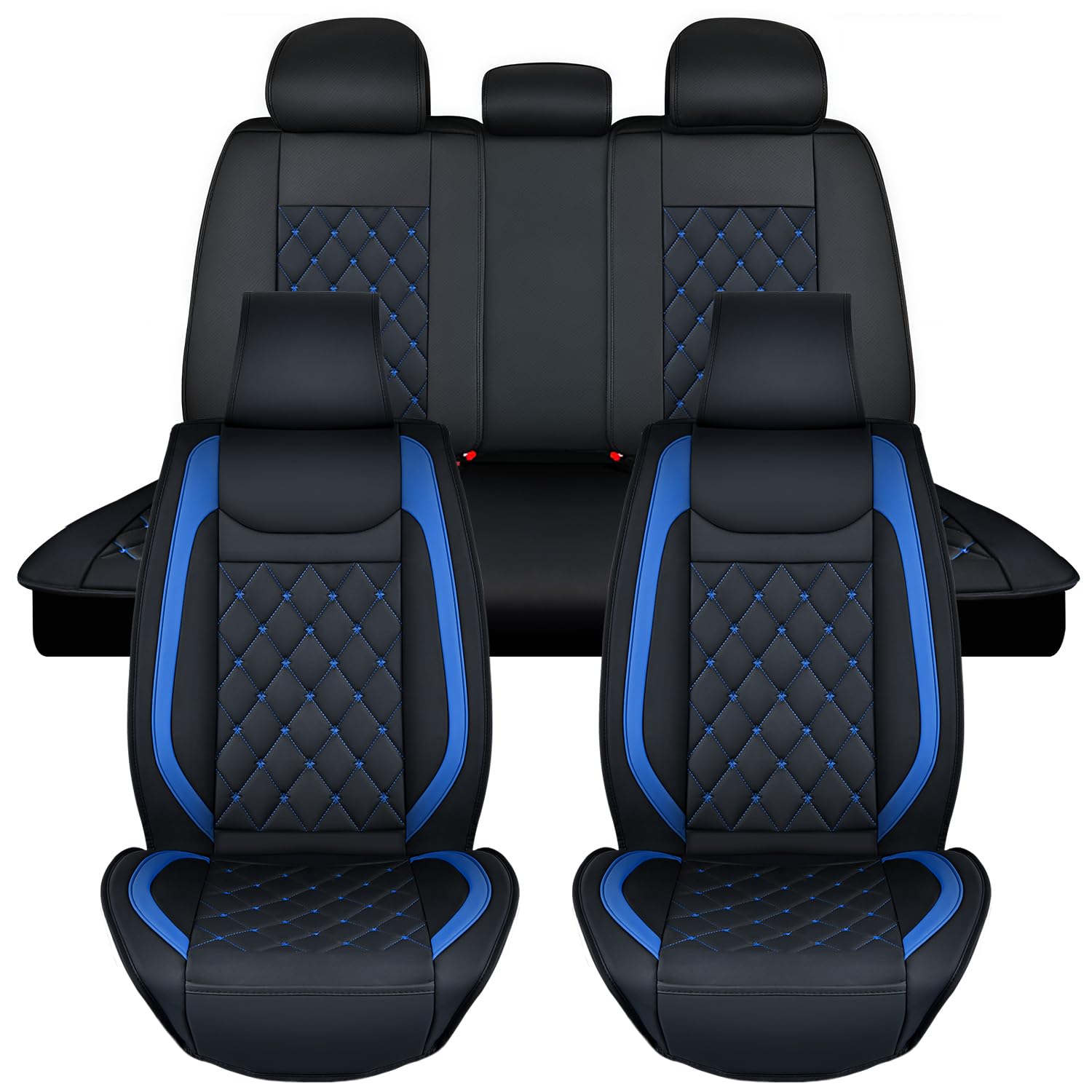 Nilight 5 Car Seat Covers Waterproof Faux Leather Cushions Anti-Slip Universal Fit for 5 Passenger Cars Kia Civic Corolla Hyundai Honda Camry CR-V RAV4 Fusion SUV Truck (Full Set, Black-Blue)
