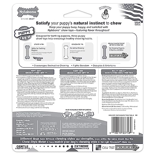 - START WITH THE SOFTER PUPPY CHEW TOY - Designed for puppies without adult teeth, the textured chicken-flavored bone helps ease teething pain