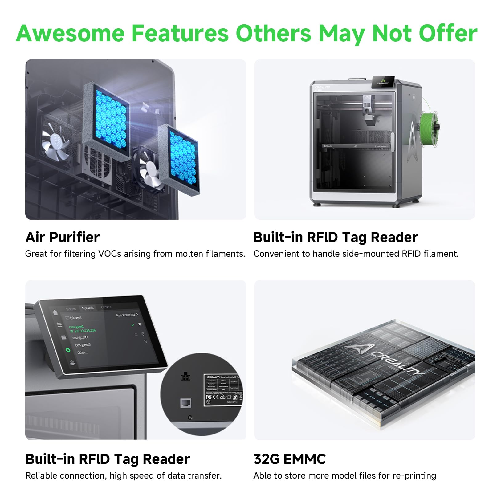 - 【16-Color Multi-Material 3D Printing】Experience creative freedom with expandable CFS units, Creality K2 Plus supporting 16-color printing in a single process. The Creality Automatic Material System intelligently manages 4 filaments simultaneously, eliminating manual swaps and post-print painting - perfect for professional-grade prototypes and multicolor models
