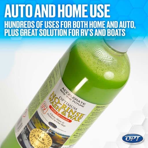 Details: Optimum No Rinse Wash and Wax is the most technologically advanced wash and wax system that eliminates polluting storm water runoff while safely cleaning all exterior car surfaces.