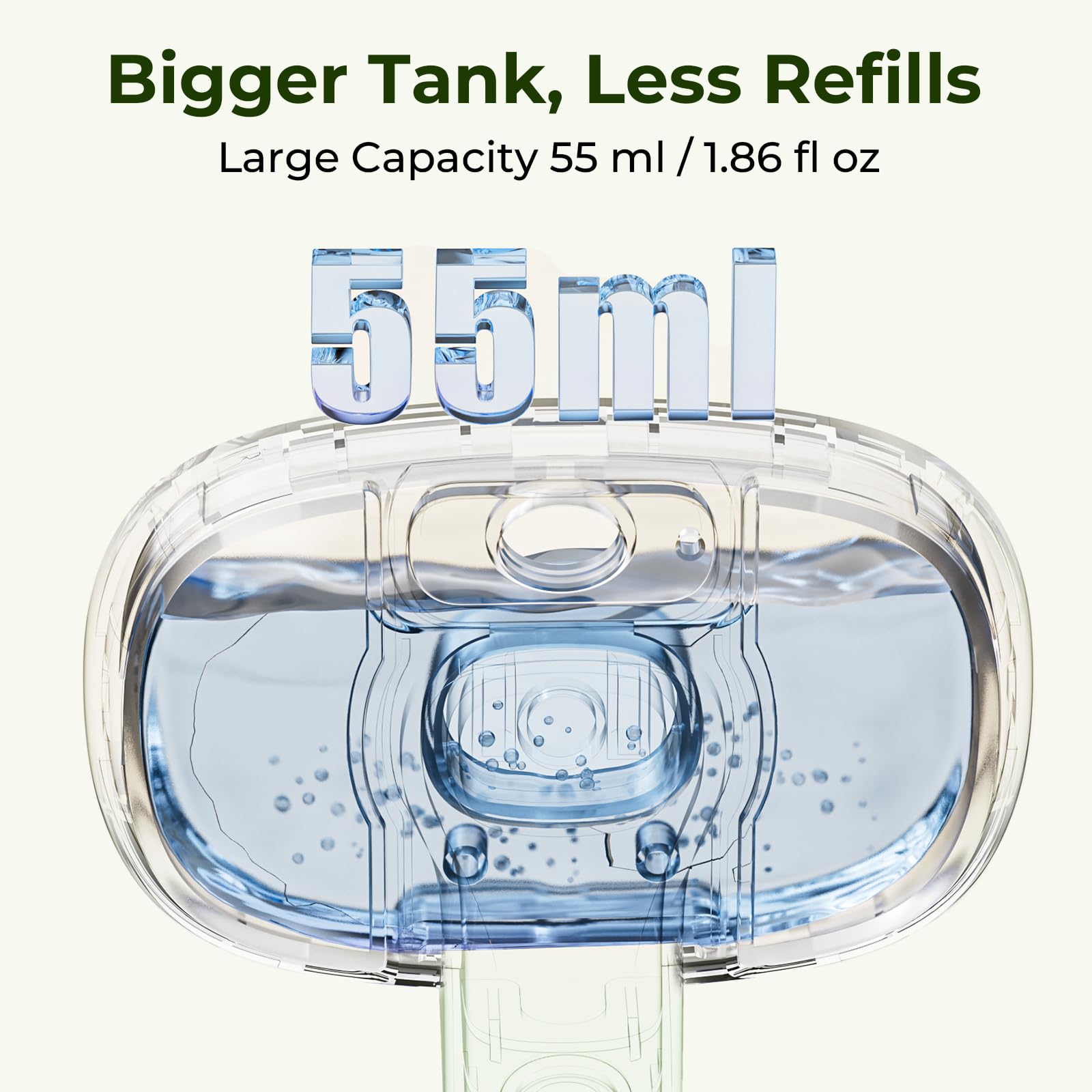 - 1.86 FL OZ EXTRA-LARGE SEE-THROUGH WATER TANK - Our cat steam brush holds triple the water of regular cat hair brushes (3X capacity) with crystal-clear visibility to monitor levels at a glance. Enjoy uninterrupted brushing sessions - no constant refills needed! Comes with a leak-proof water bottle for quick, no-mess water refills. *Cool mist only (does not produce hot steam)