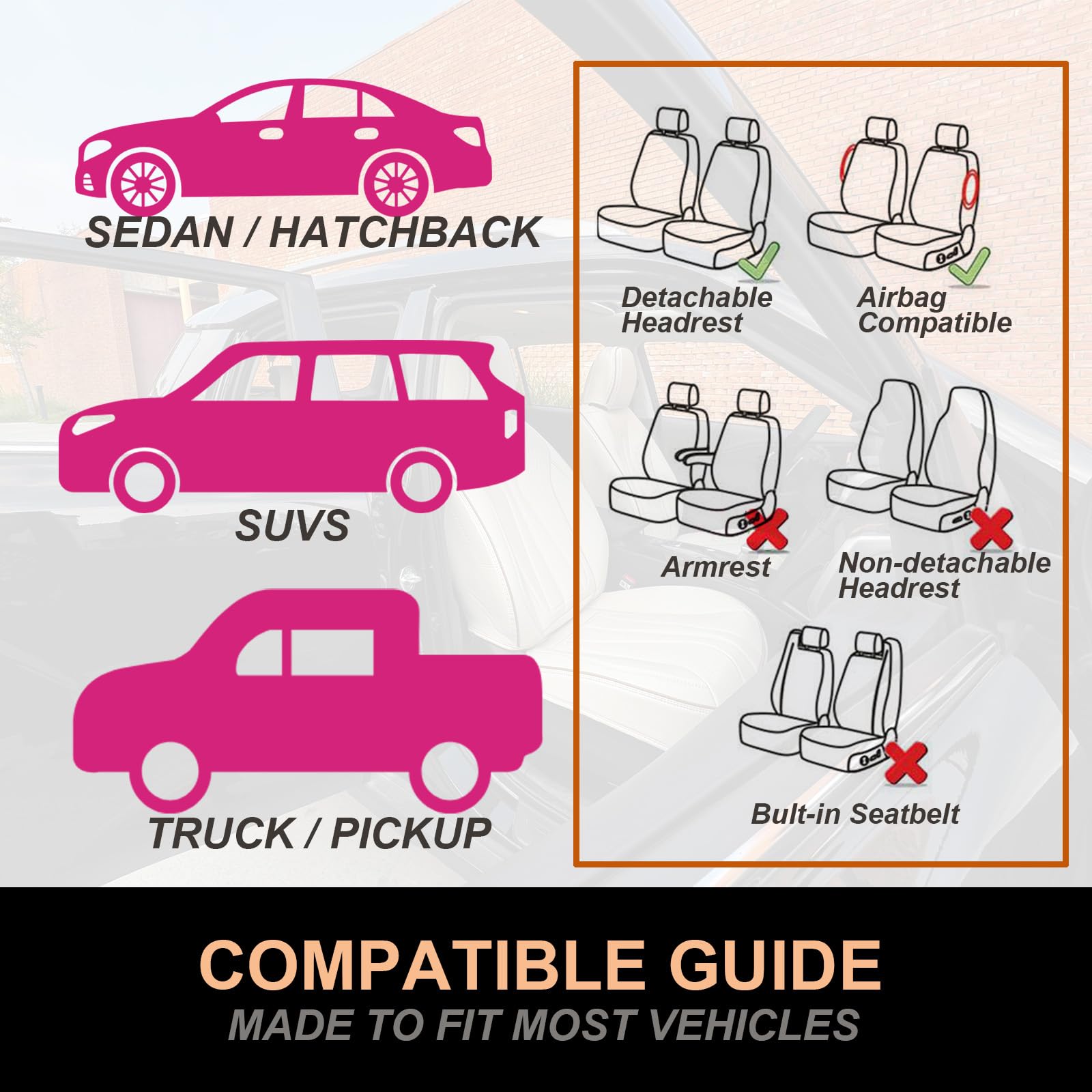 - 3D Modeling & 360-Degree Coverage: Each pack includes 2 front seat covers designed for a universal fit in most cars, SUVs, trucks, and pickups. The car seat covers are designed to fit snugly, ensuring they stay securely in place once installed. Drive in style and comfort while protecting your seats from spills, stains, pet hair, and harmful UV rays. Our covers are resistant to fading, gentle to the touch, waterproof, and breathable for long-lasting use.